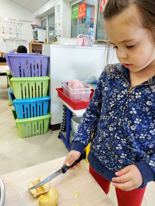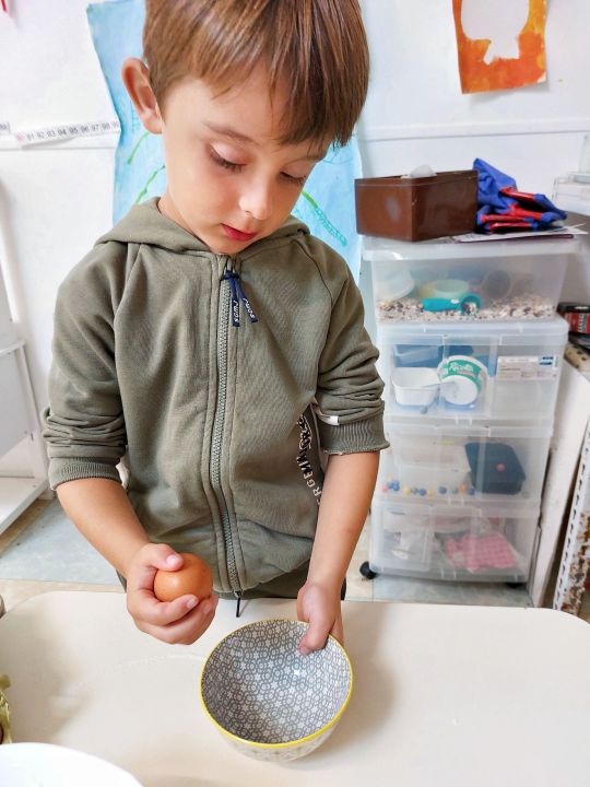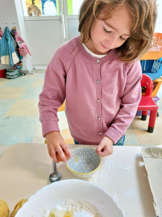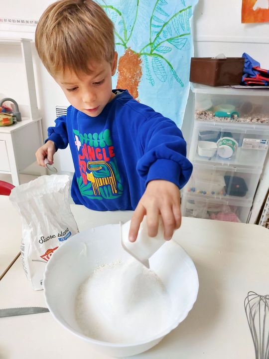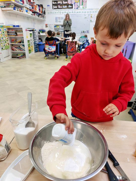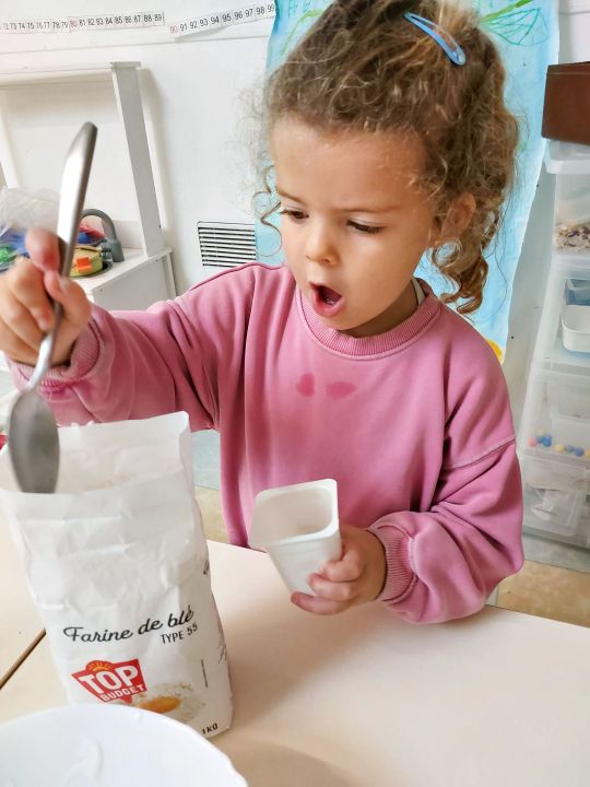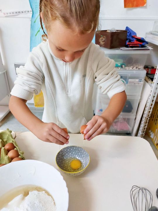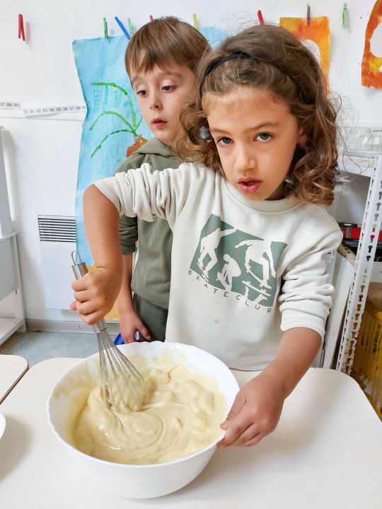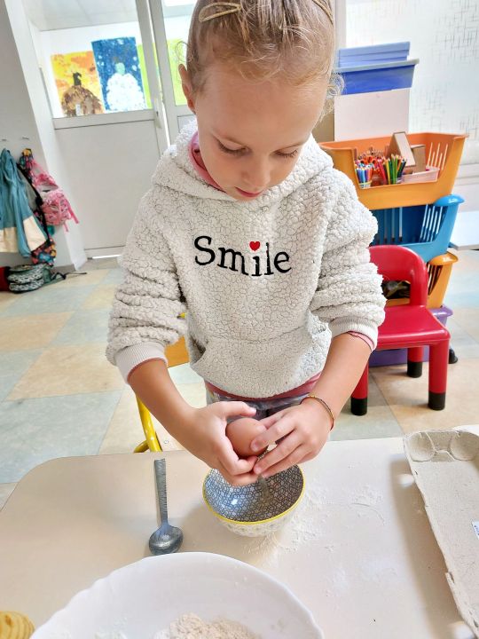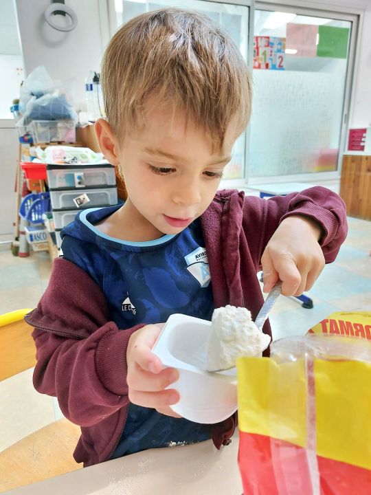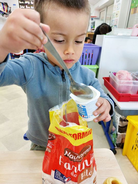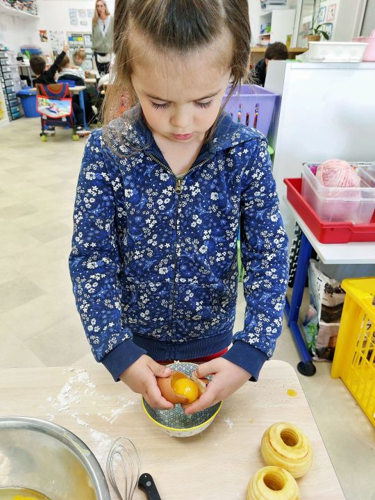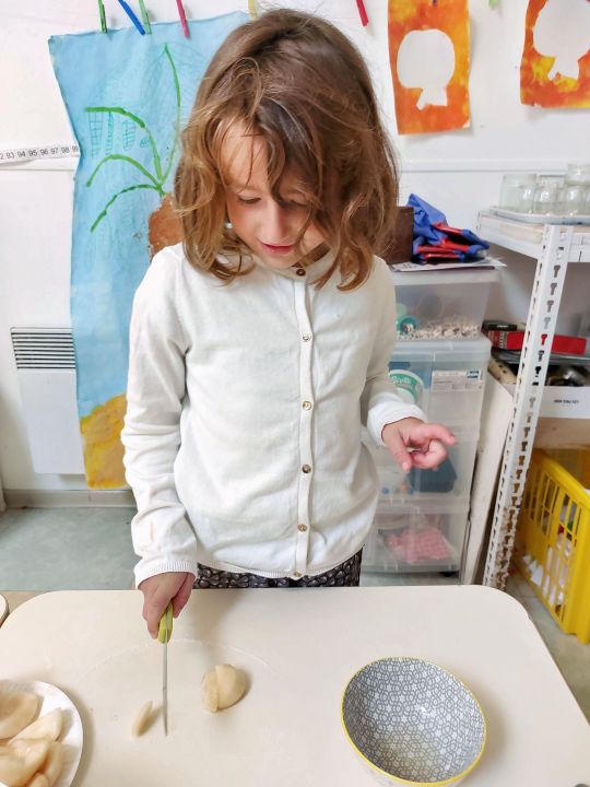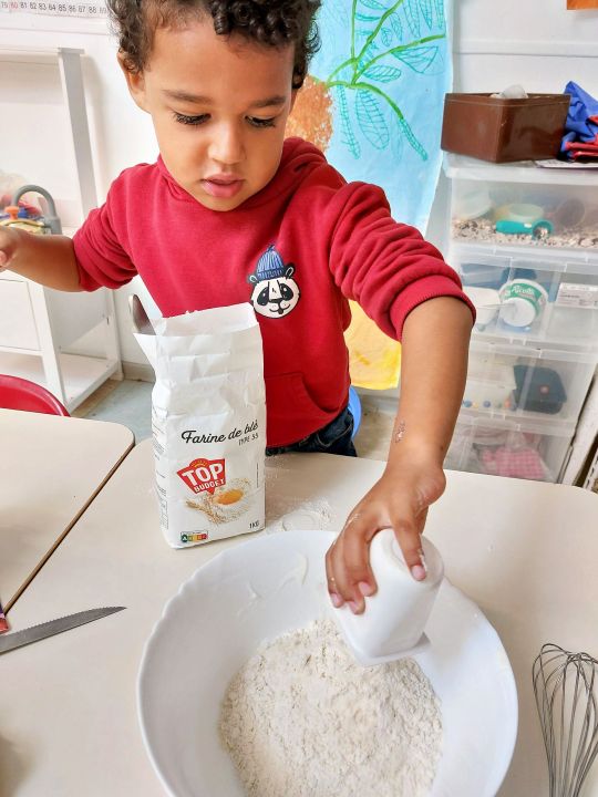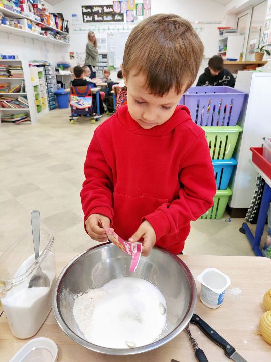 En cette dernière semaine de la première période, nous fêtons l'anniversaire de Maxime. Il fait 5 ans en ce mois d'octobre! Pour cela, nous avons cuisiné un gâteau aux poires avec Marion et nous l'avons partagé l'après-midi....