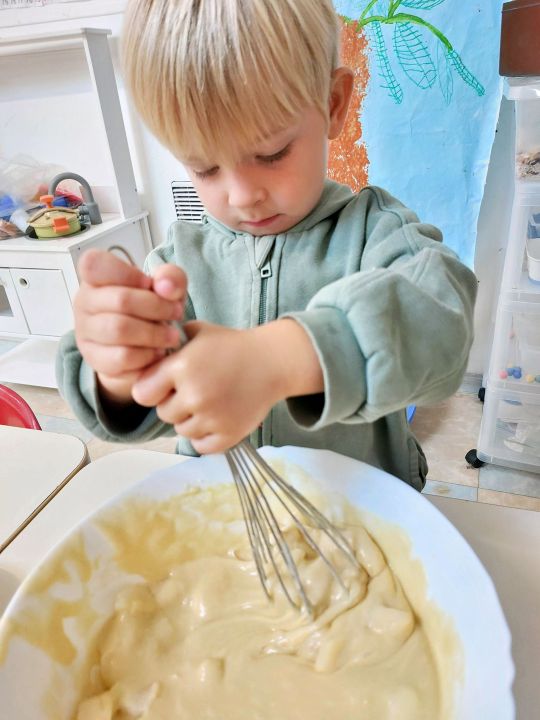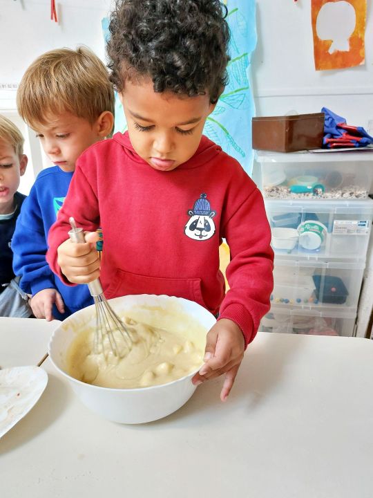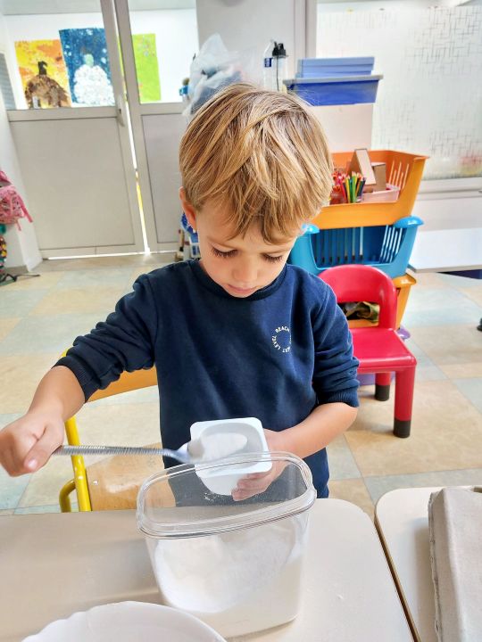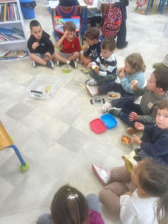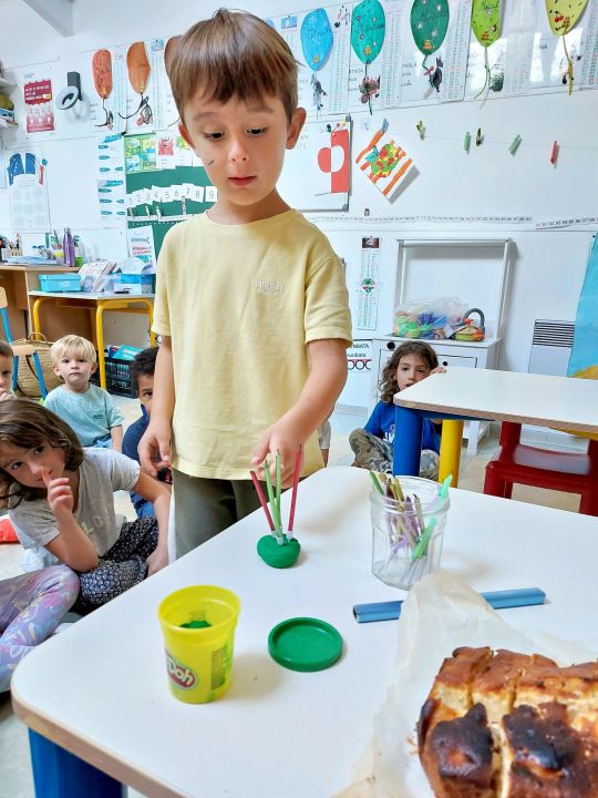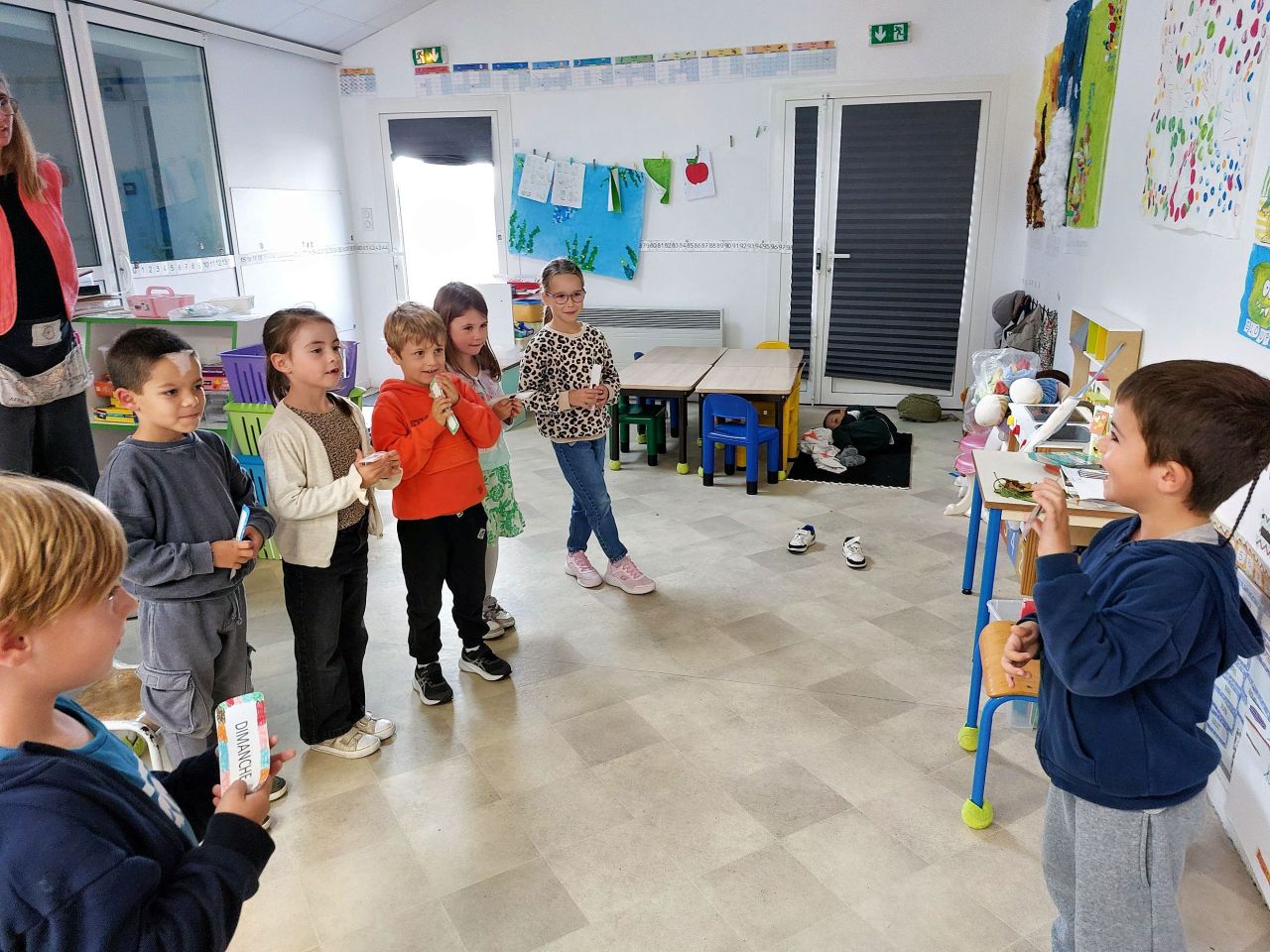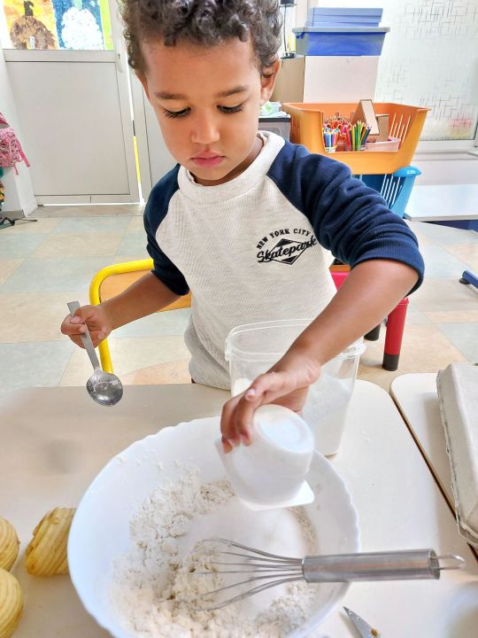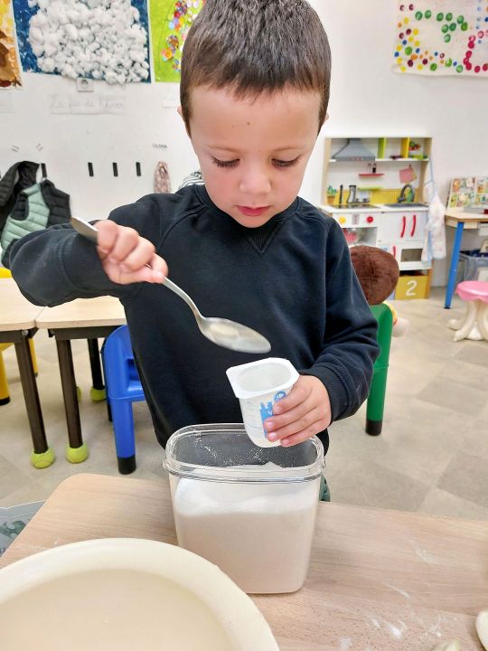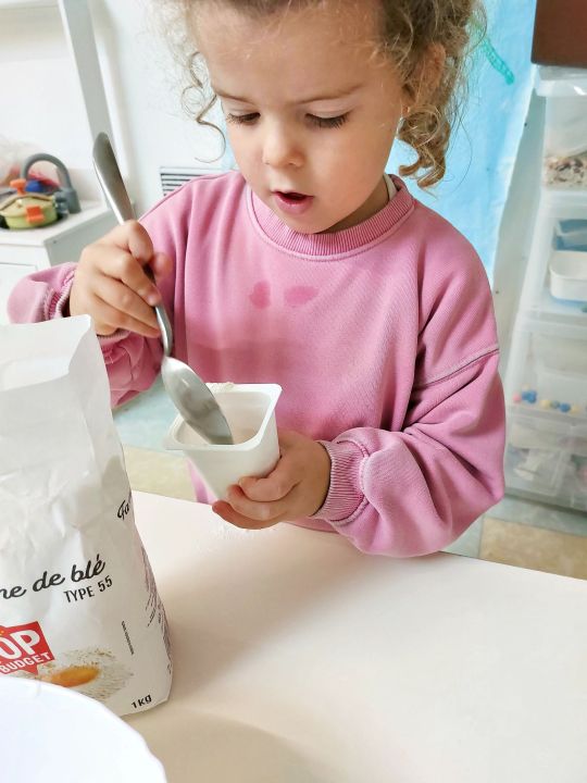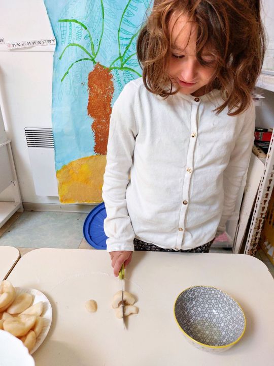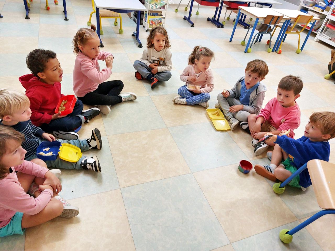 En cette dernière semaine de la première période, nous fêtons l'anniversaire de Maxime. Il fait 5 ans en ce mois d'octobre! Pour cela, nous avons cuisiné un gâteau aux poires avec Marion et nous l'avons partagé l'après-midi....