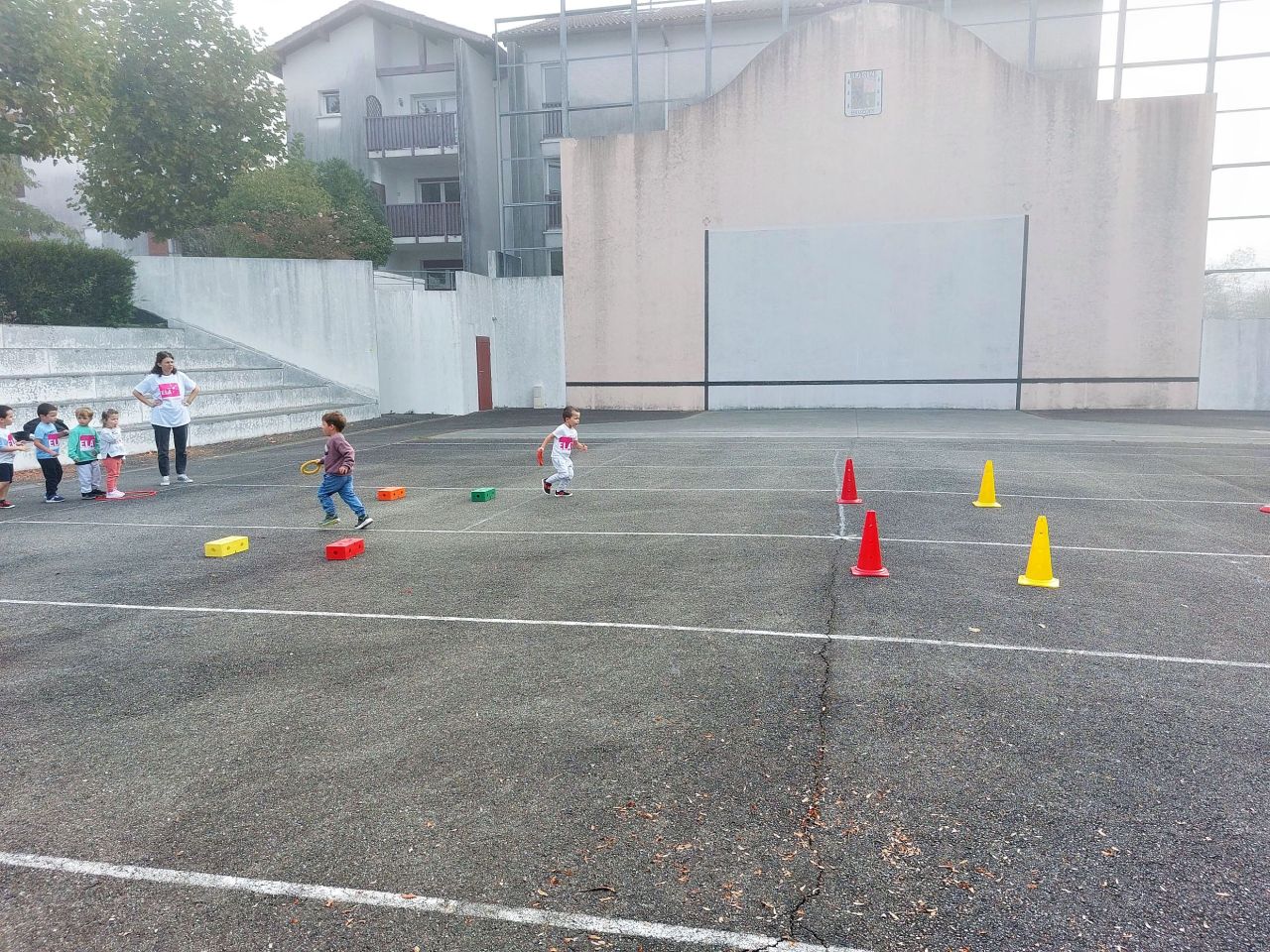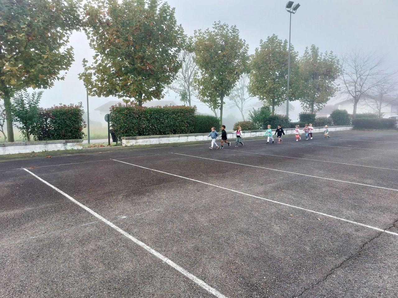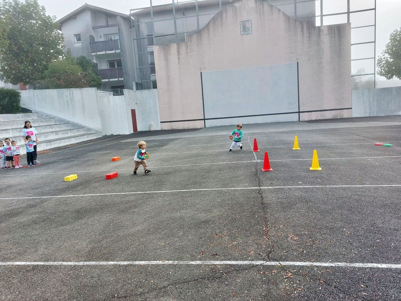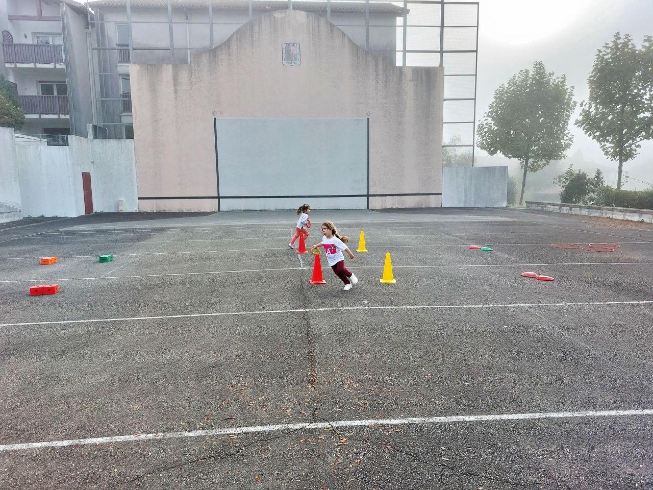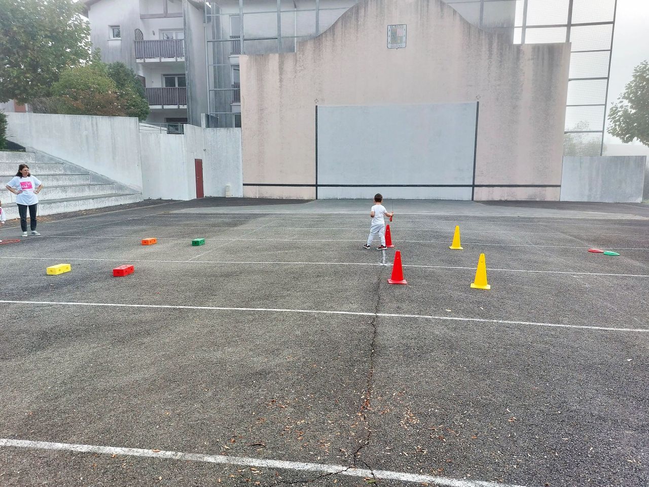 Les enfants de la Grande section au CM2 se sont rendus à Lokarri par la voie verte. Le terrain de foot étant trop mouillé pour courir sur l'herbe, un parcours à côté leur a été...