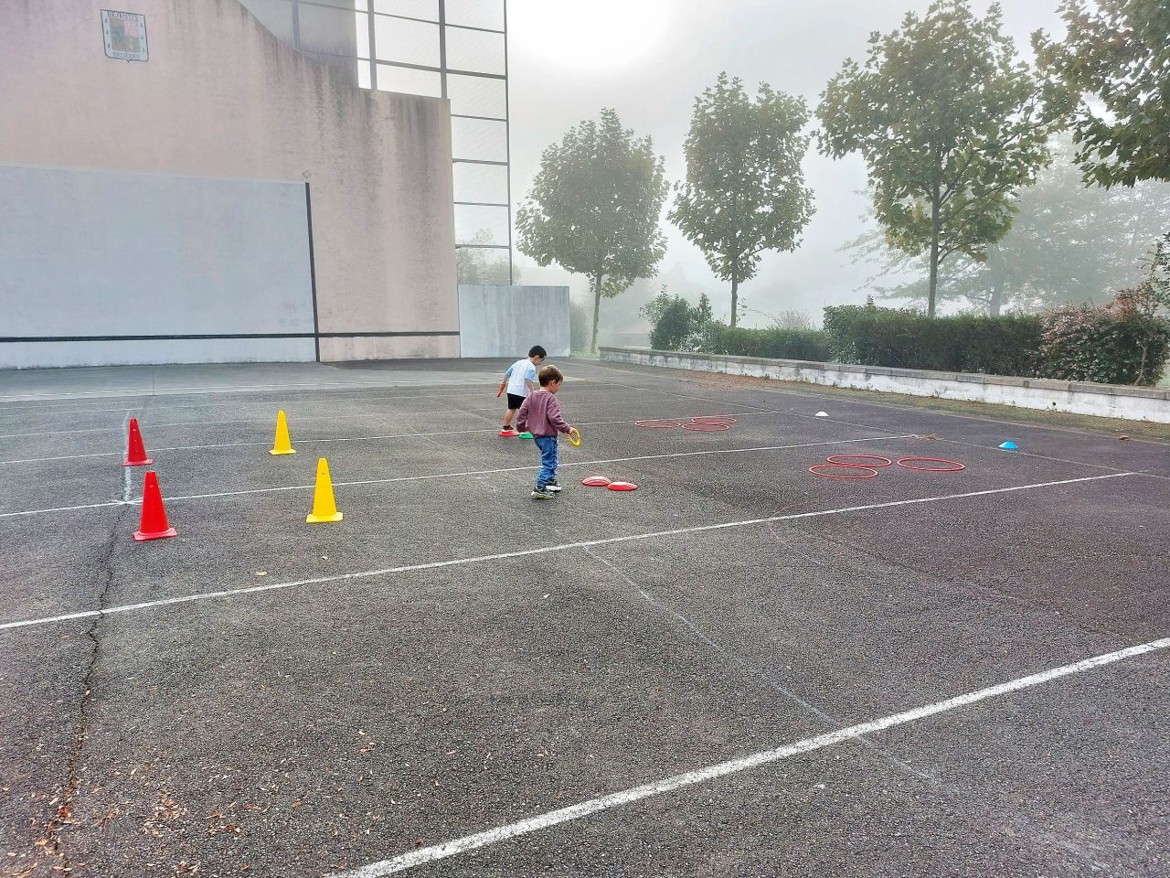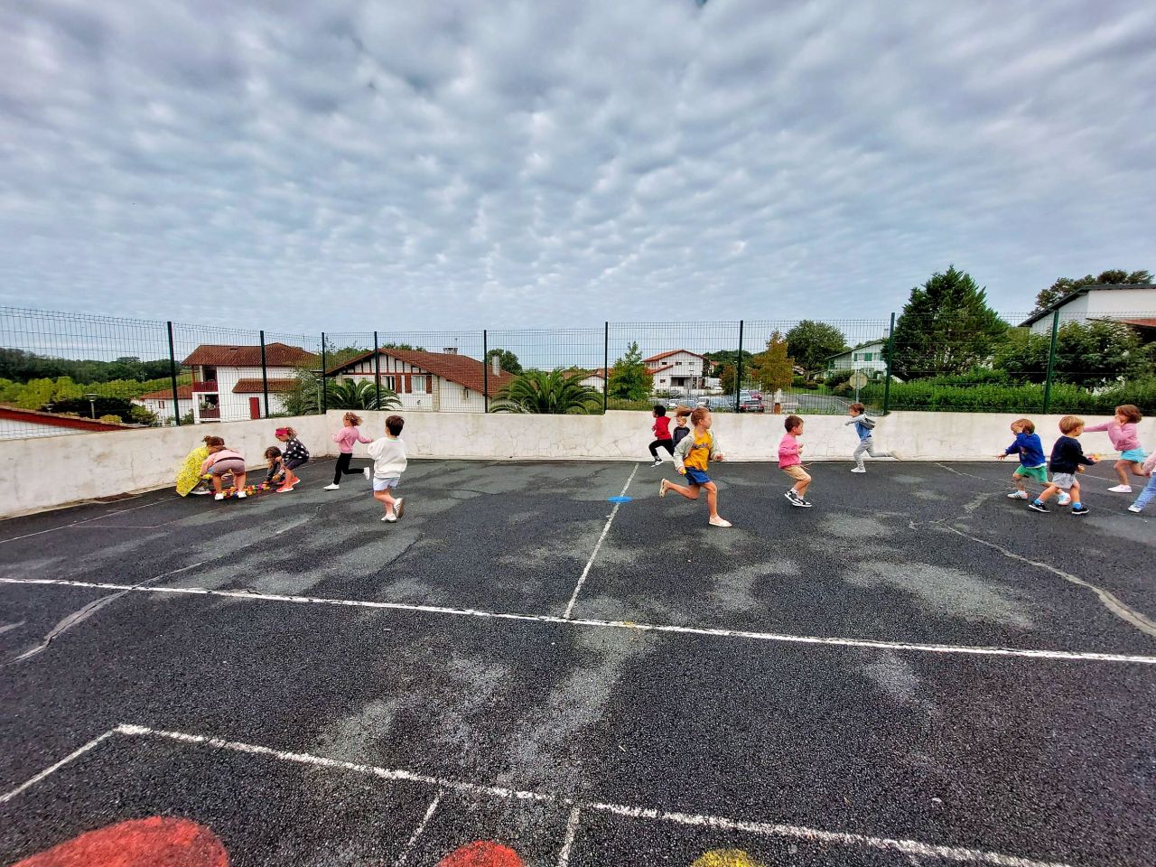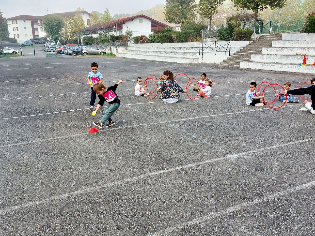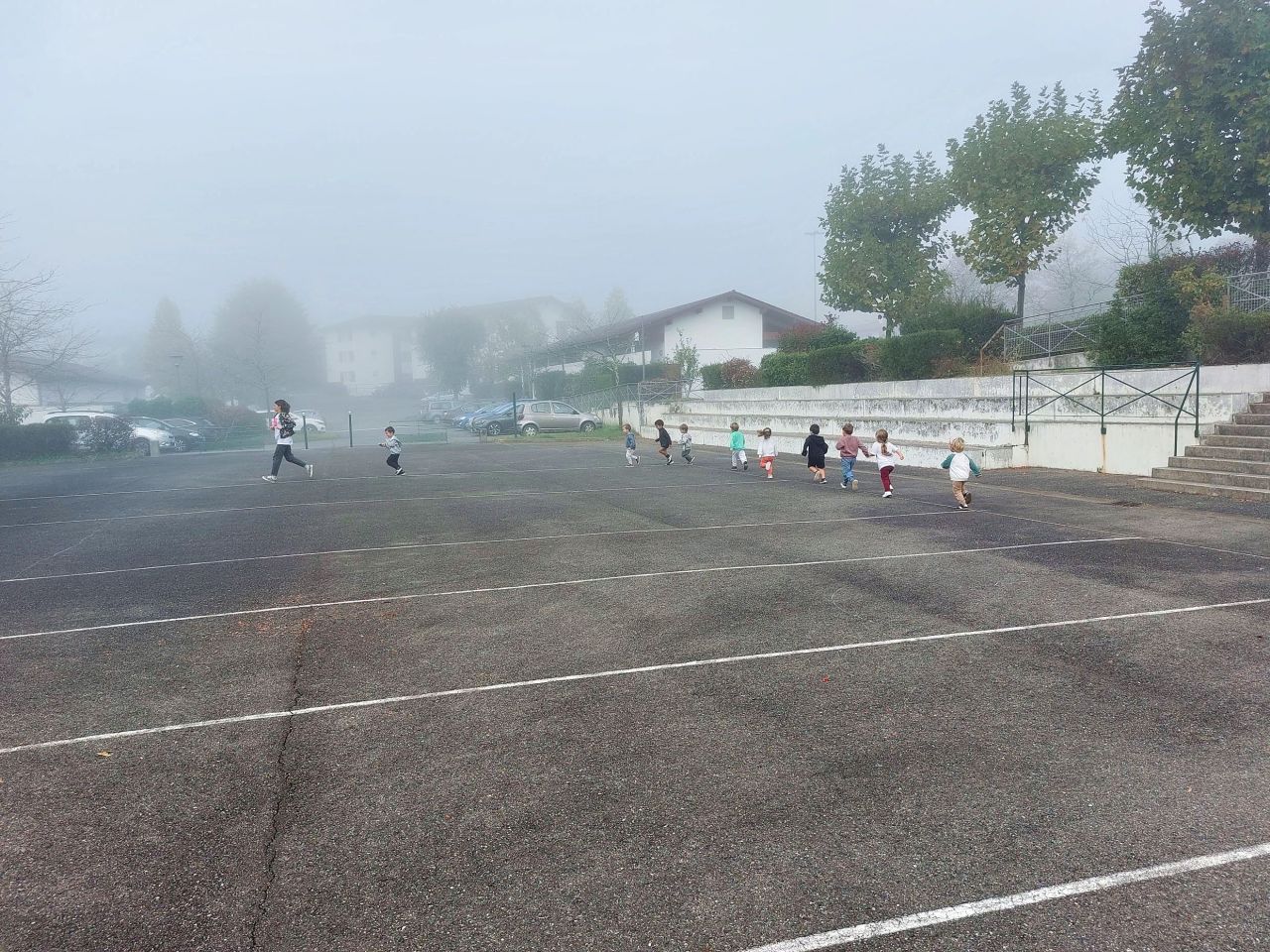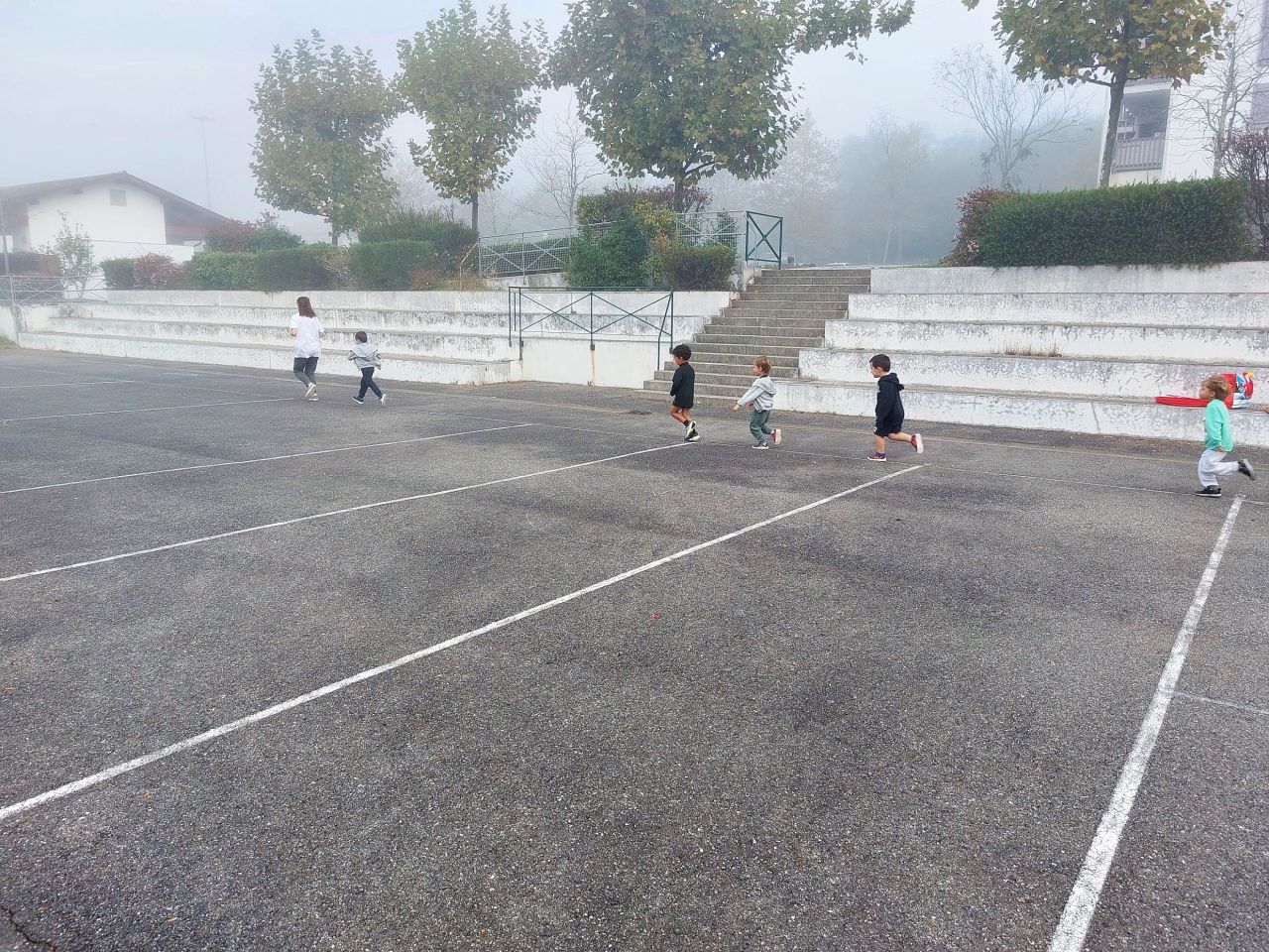 Les enfants de la Grande section au CM2 se sont rendus à Lokarri par la voie verte. Le terrain de foot étant trop mouillé pour courir sur l'herbe, un parcours à côté leur a été...