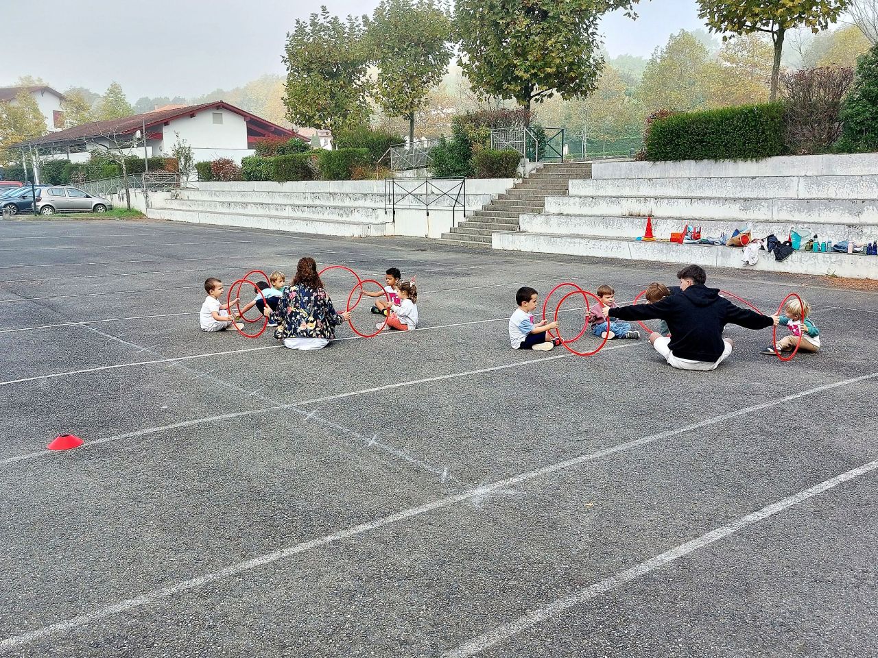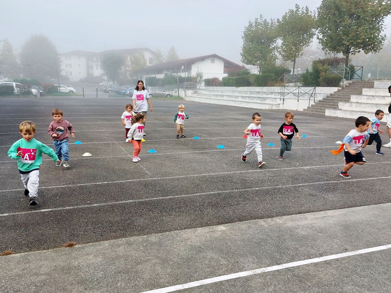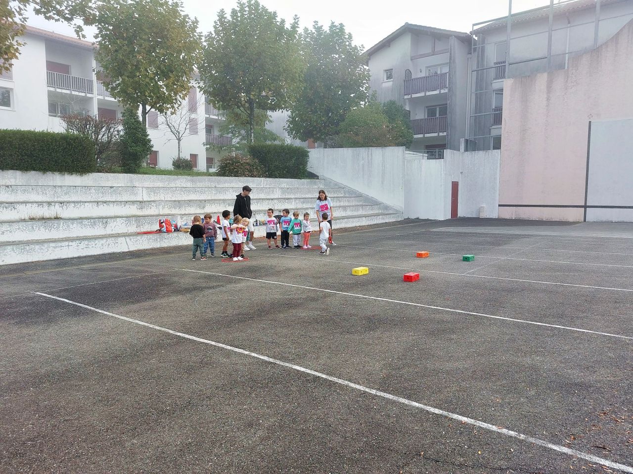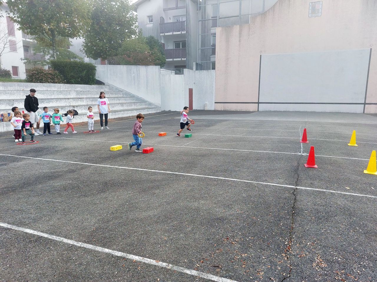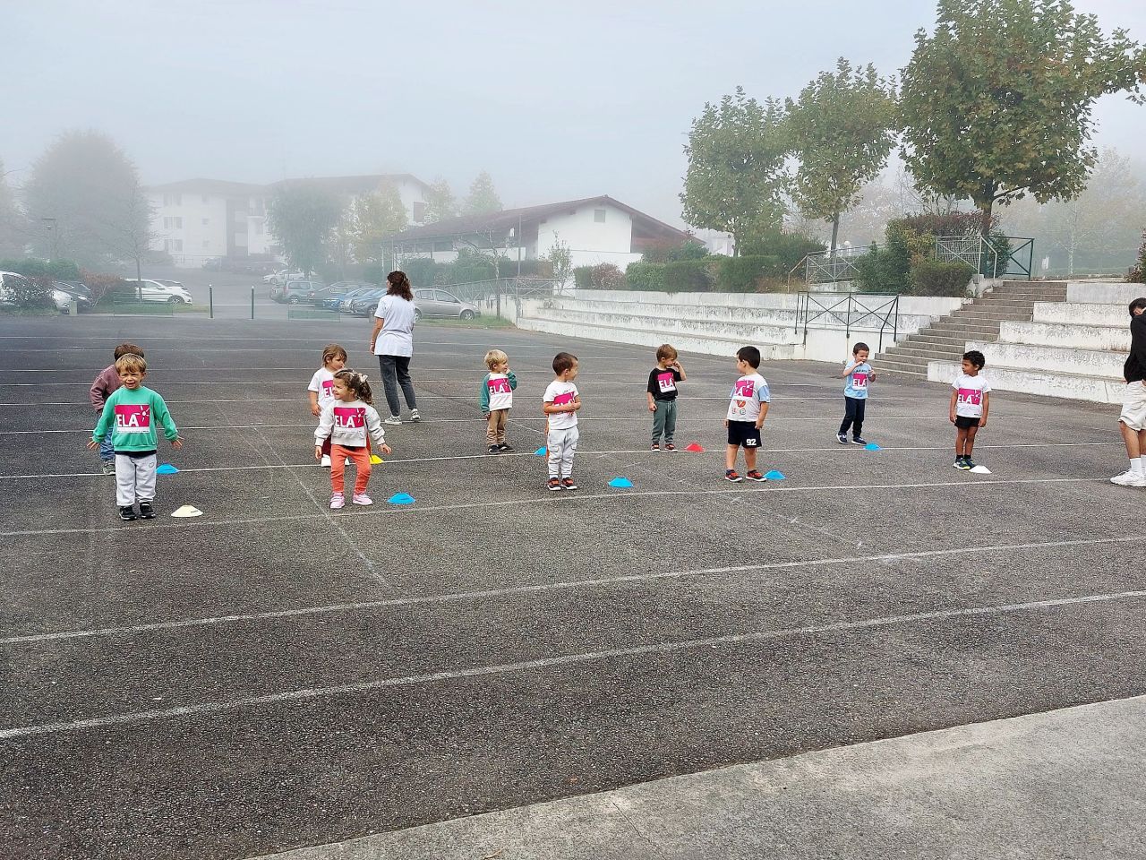 Les enfants de la Grande section au CM2 se sont rendus à Lokarri par la voie verte. Le terrain de foot étant trop mouillé pour courir sur l'herbe, un parcours à côté leur a été...