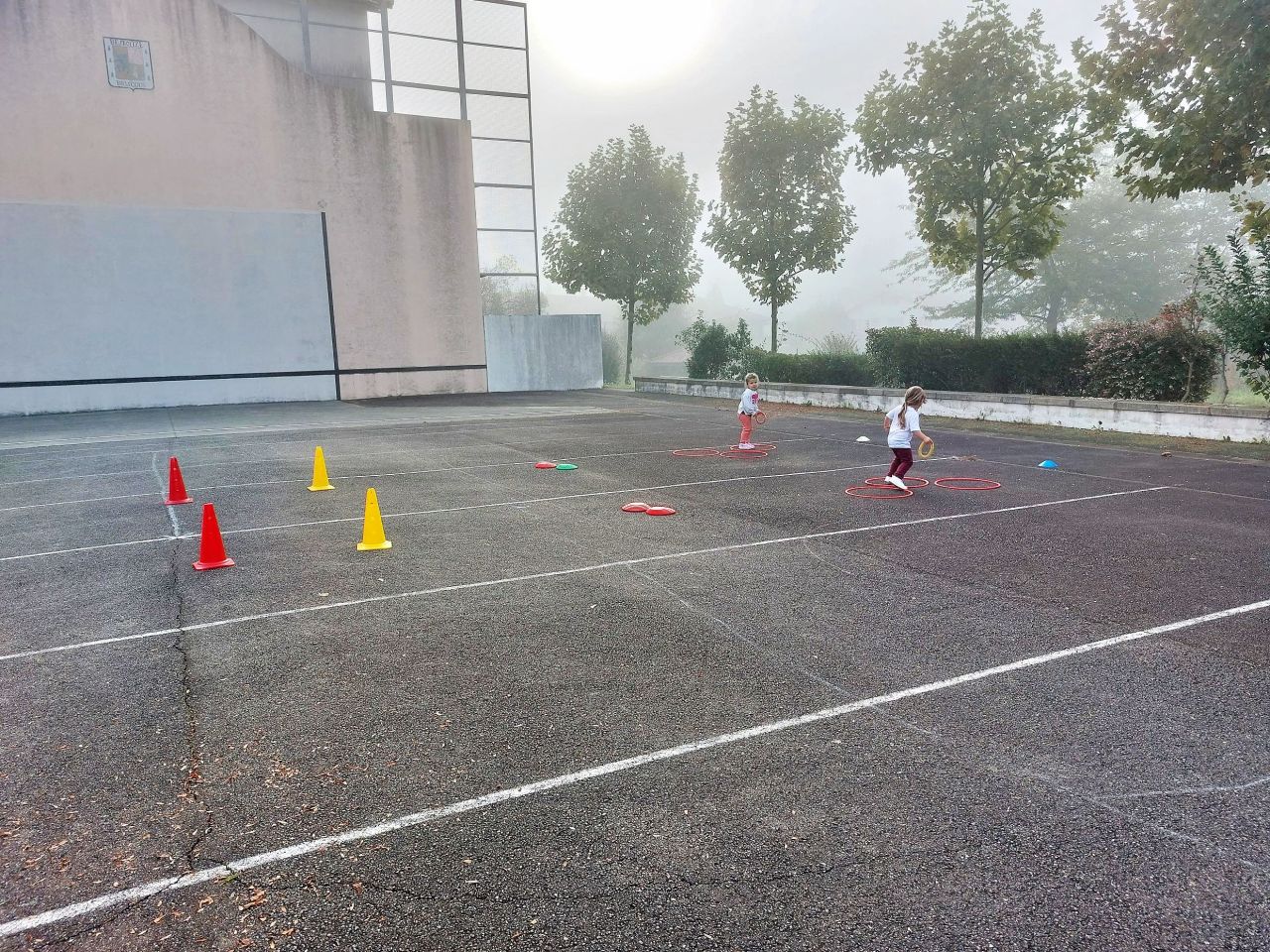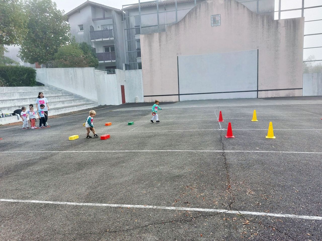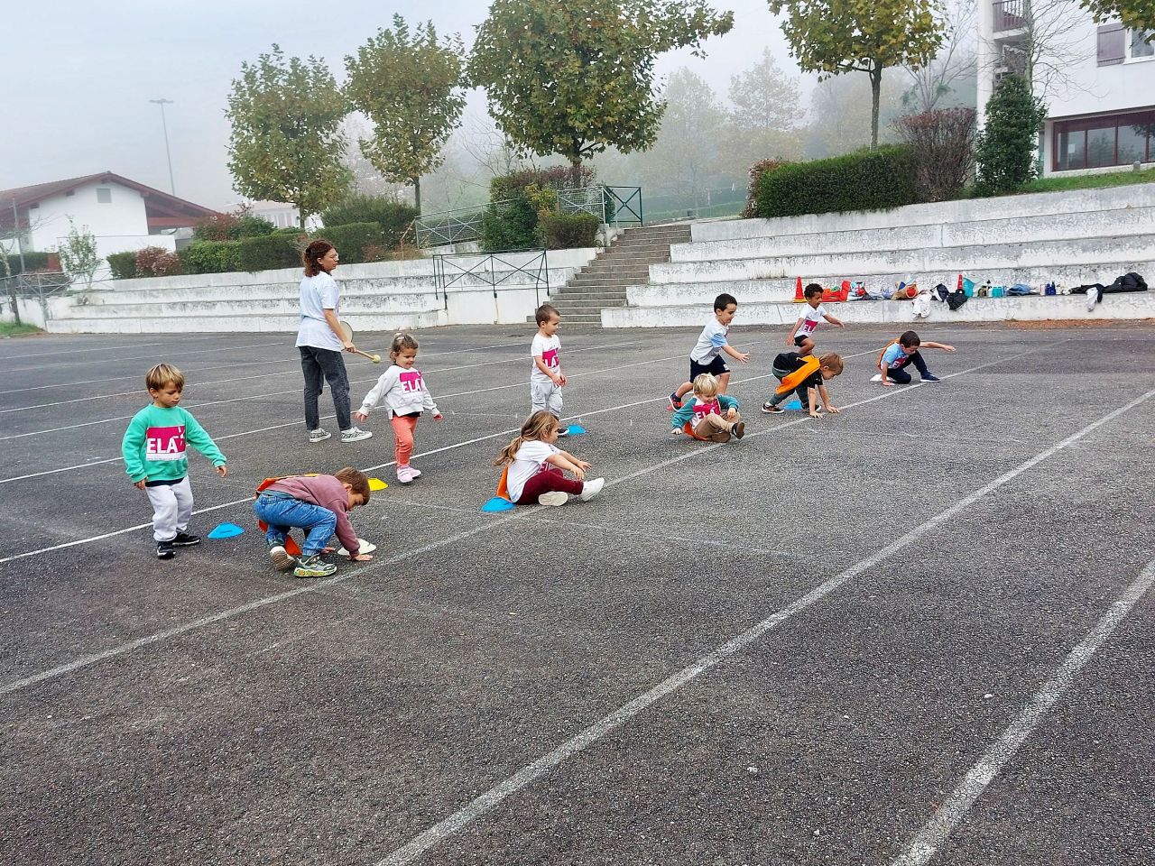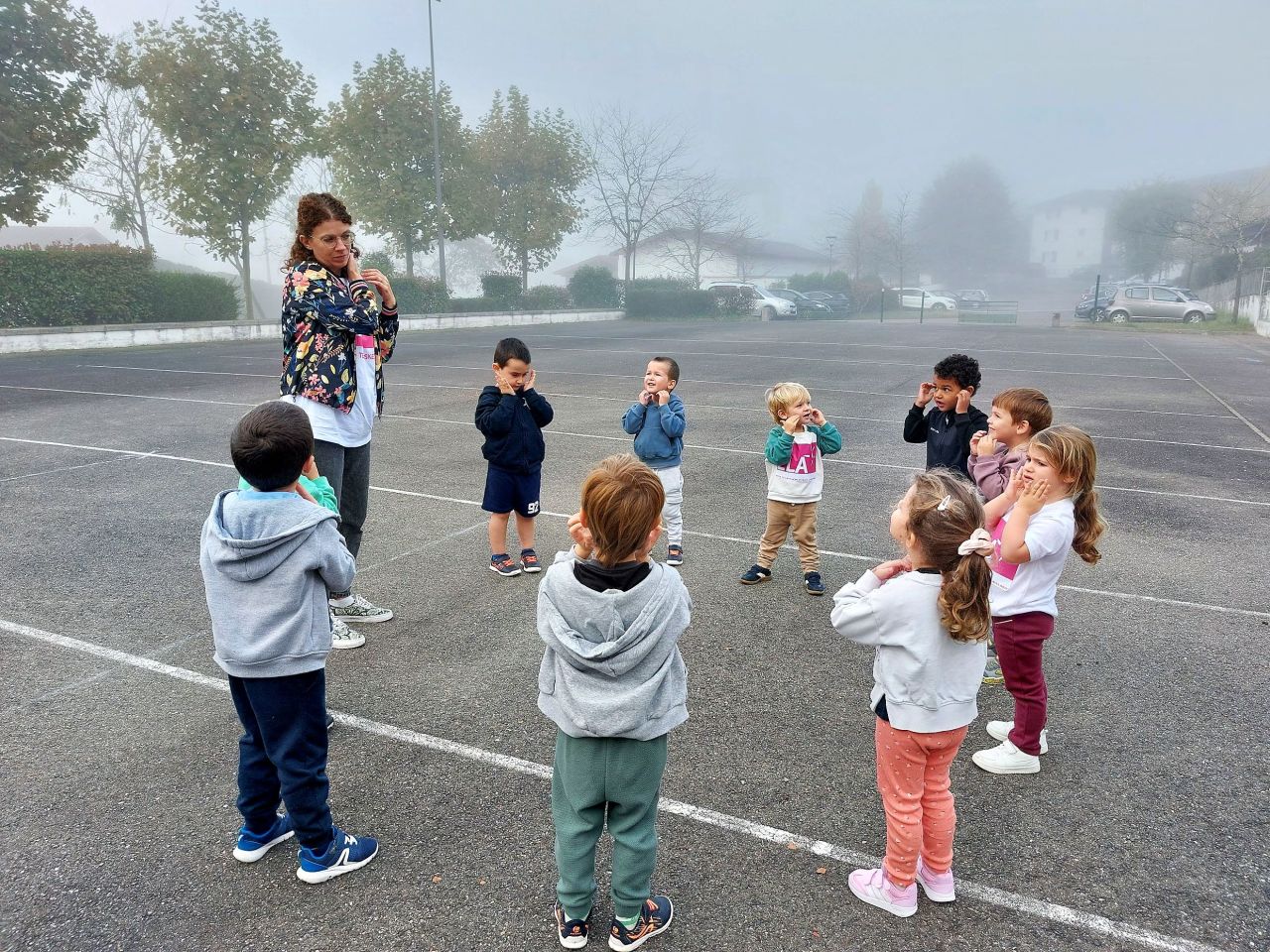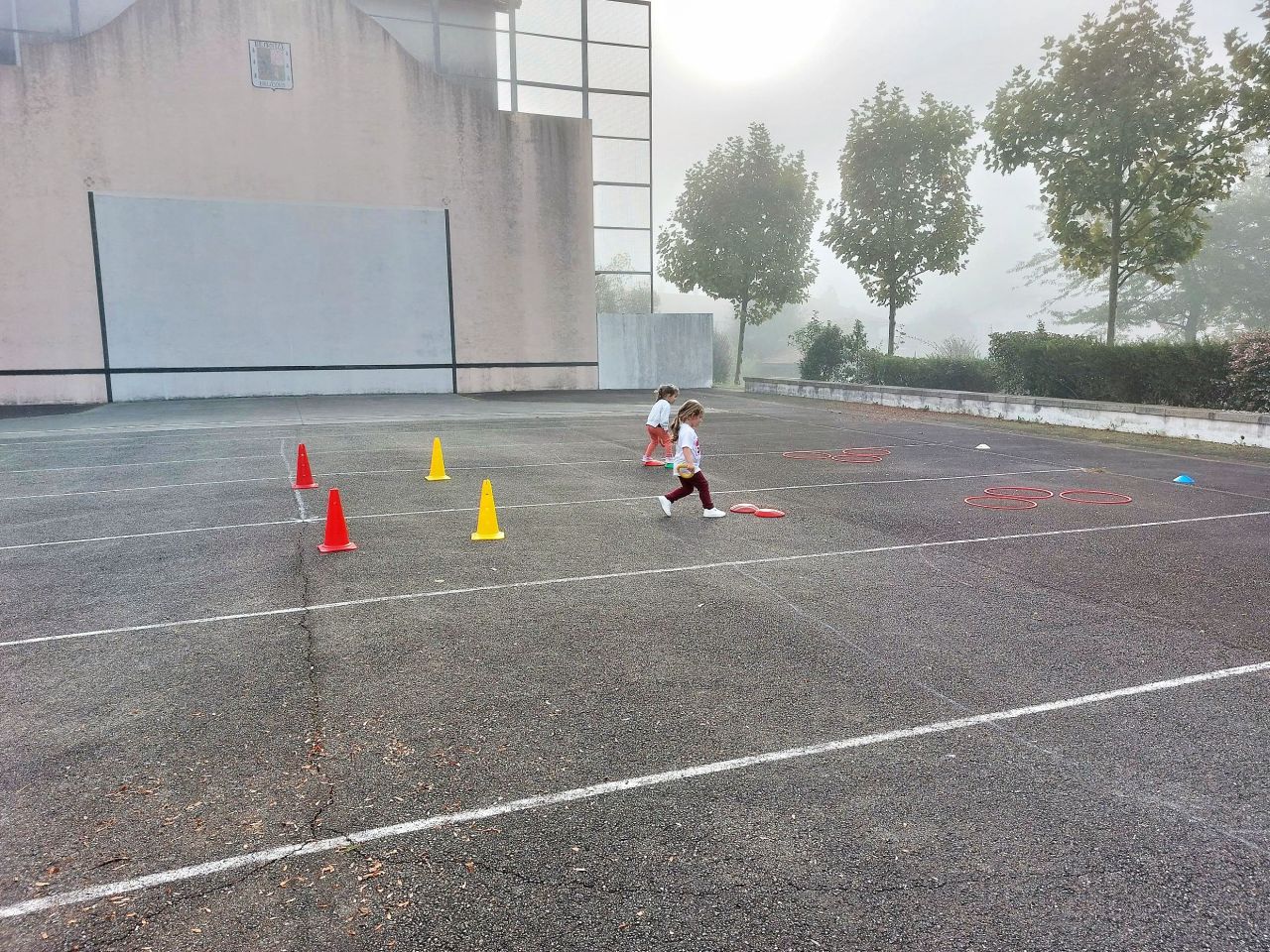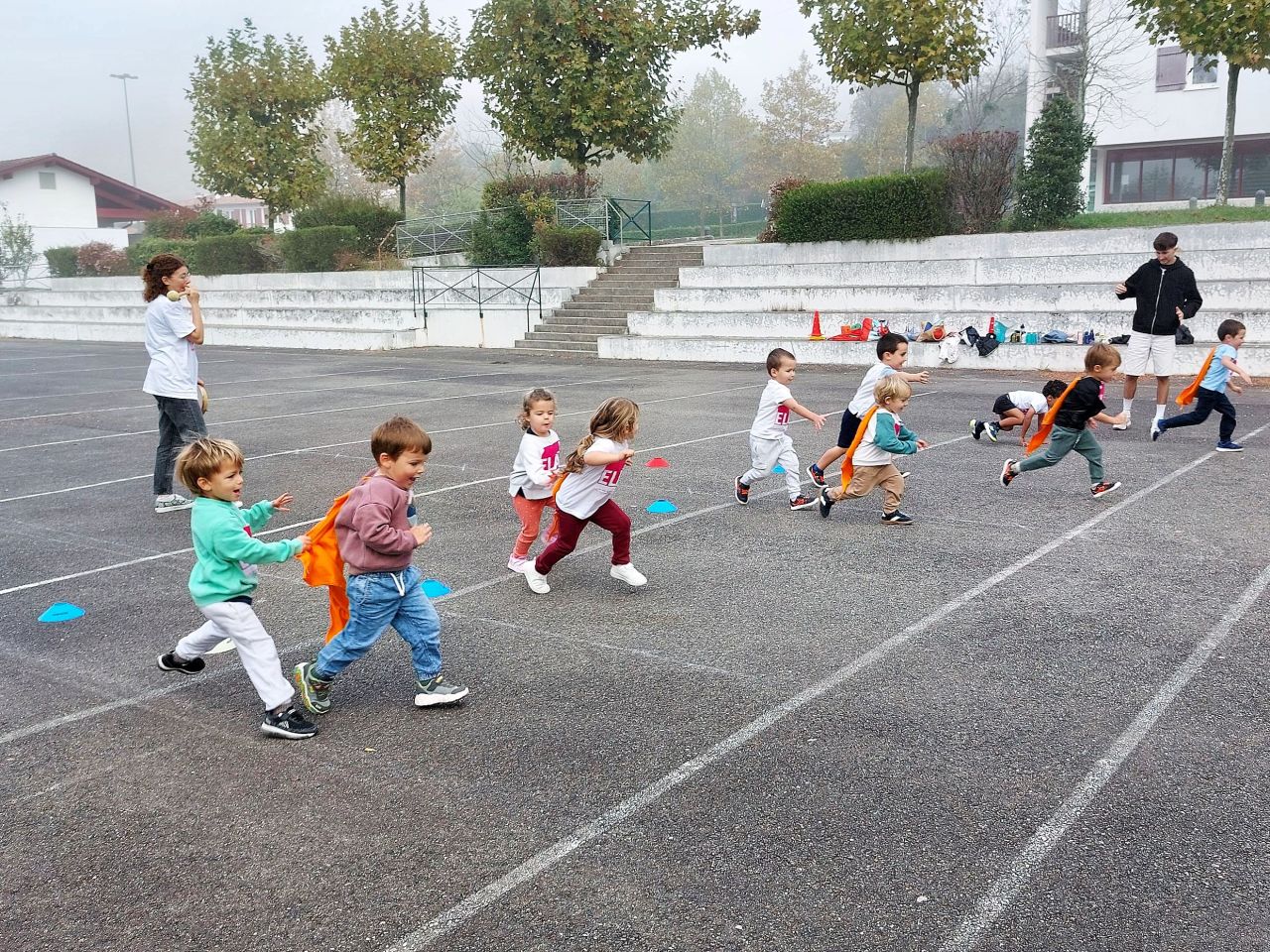Les enfants de la Grande section au CM2 se sont rendus à Lokarri par la voie verte. Le terrain de foot étant trop mouillé pour courir sur l'herbe, un parcours à côté leur a été...