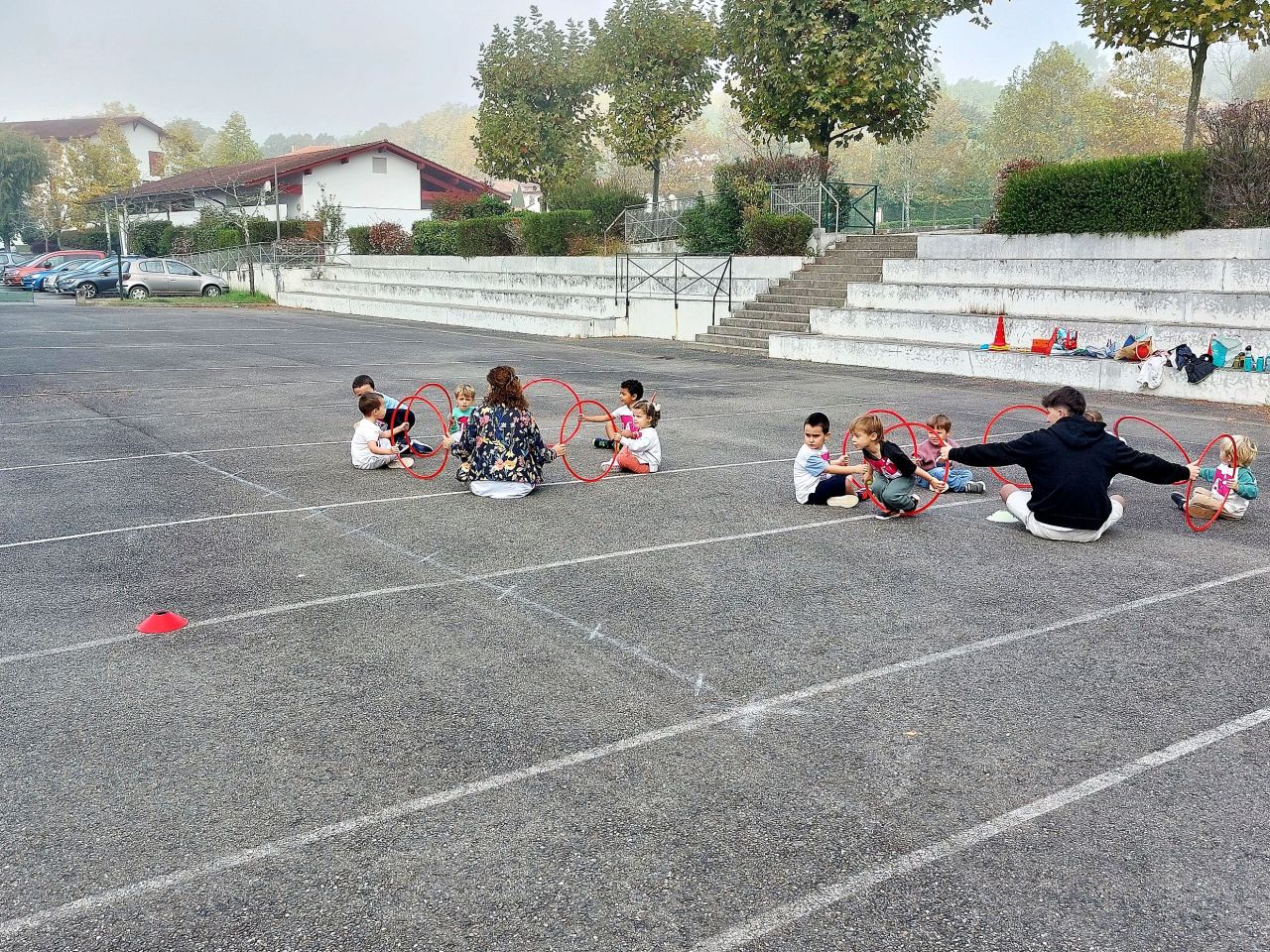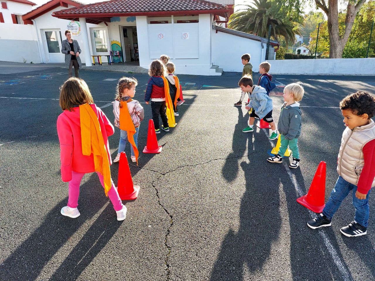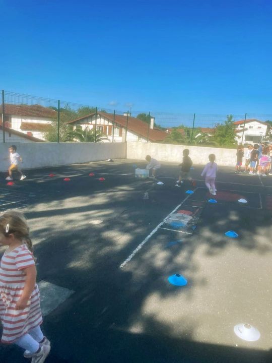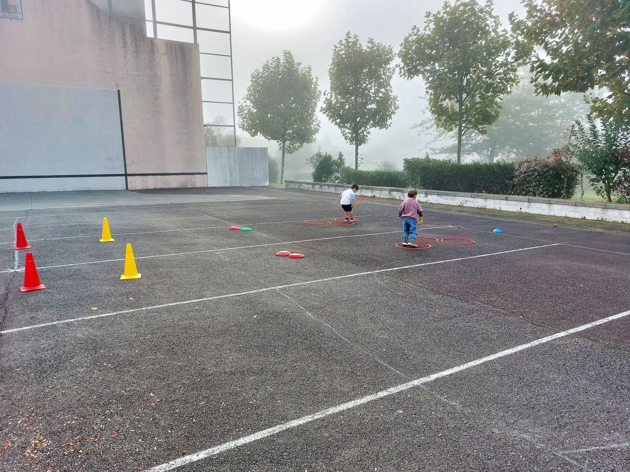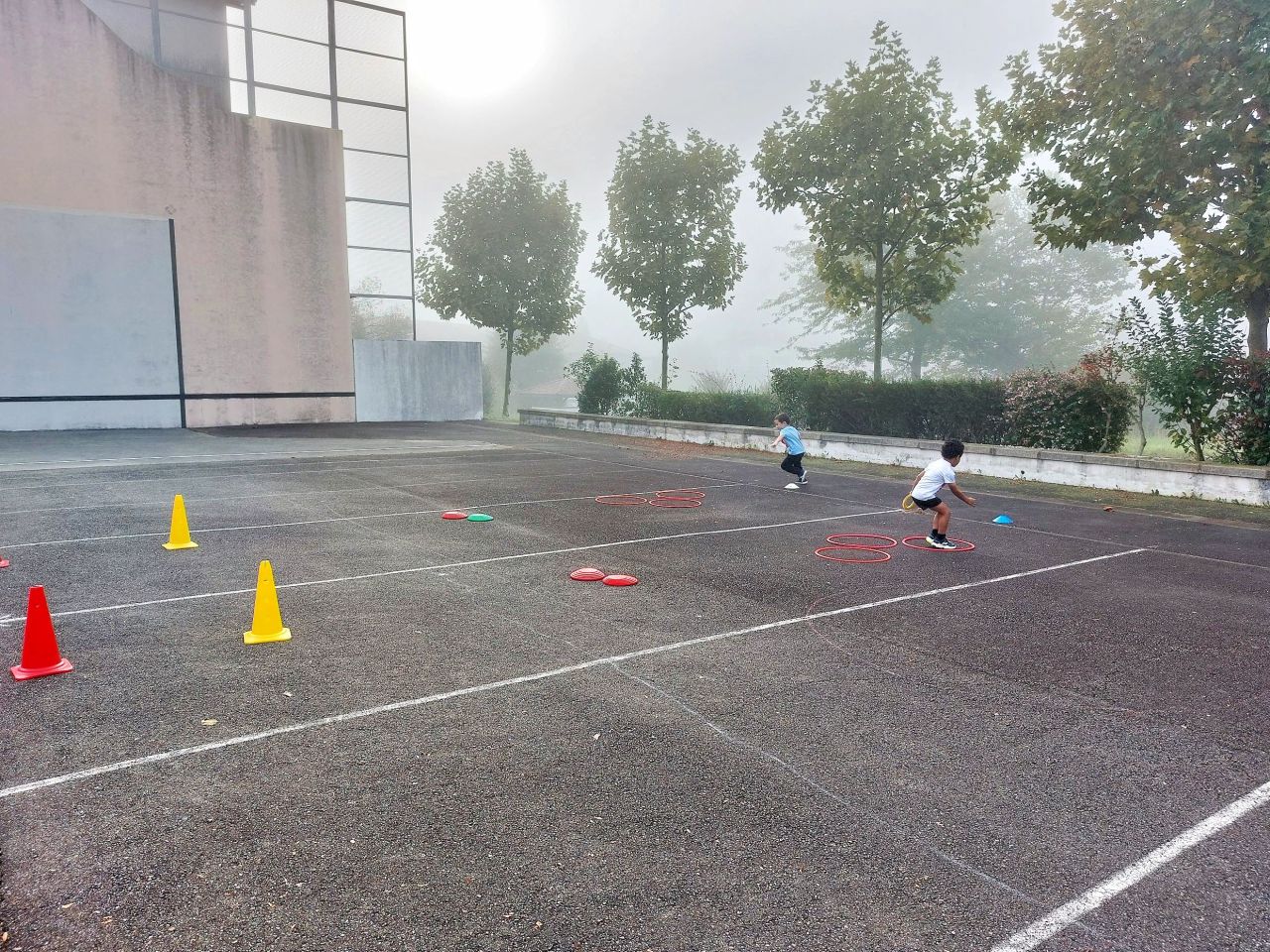 Les enfants de la Grande section au CM2 se sont rendus à Lokarri par la voie verte. Le terrain de foot étant trop mouillé pour courir sur l'herbe, un parcours à côté leur a été...