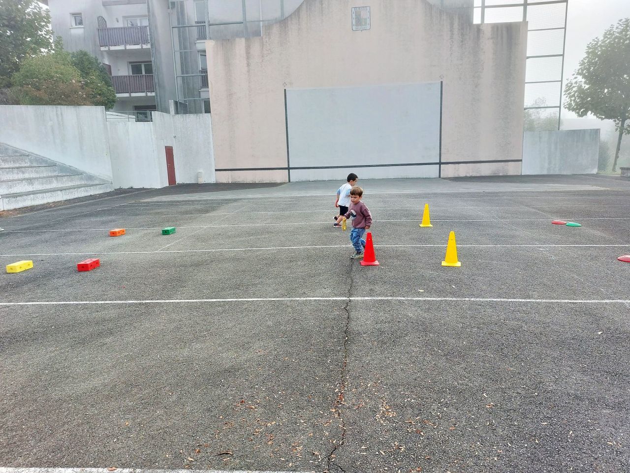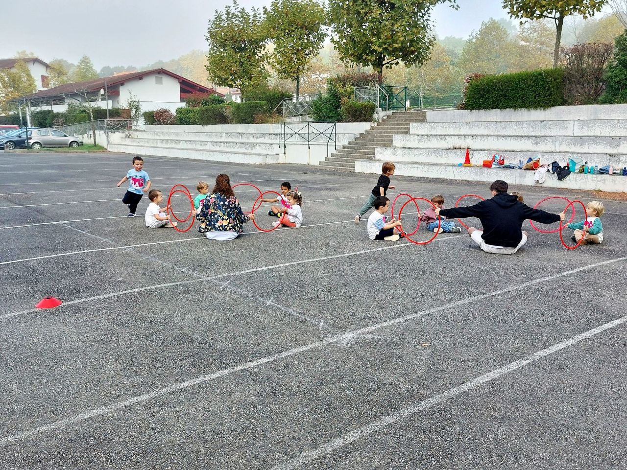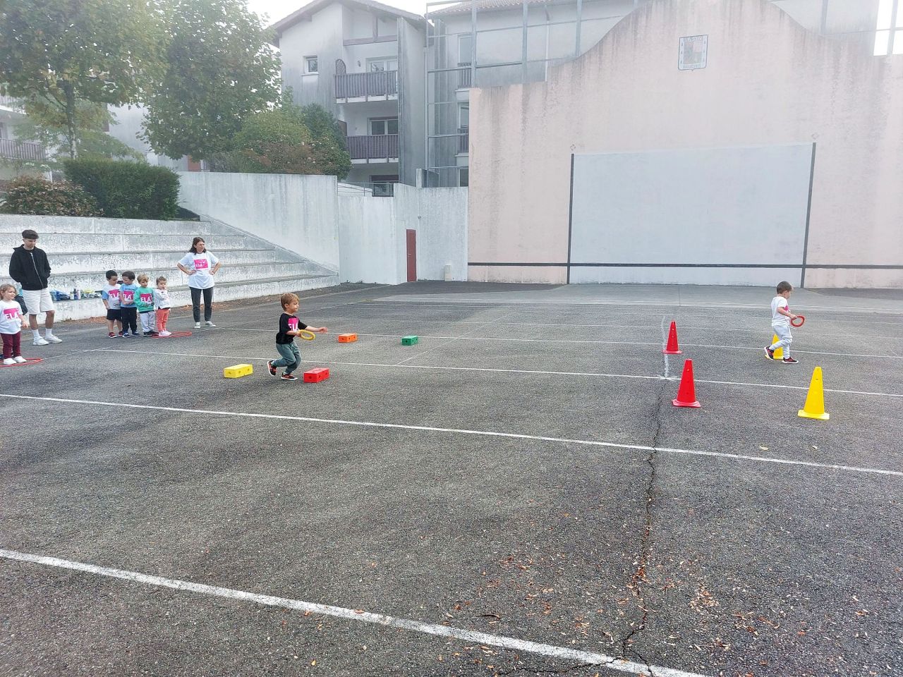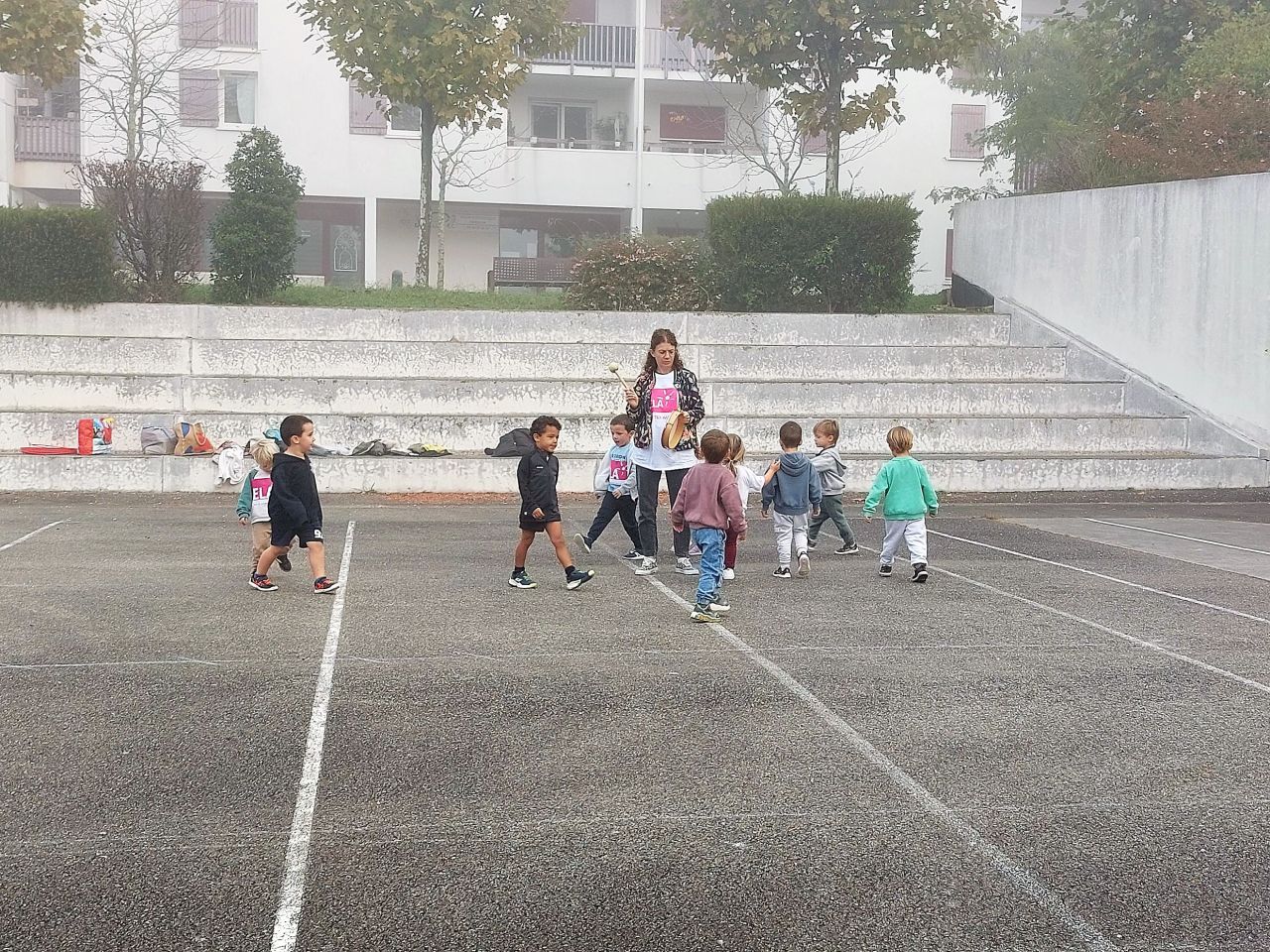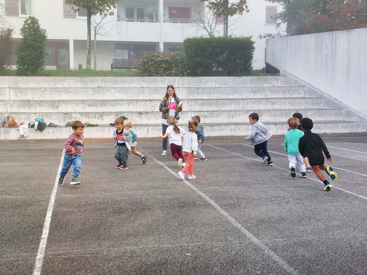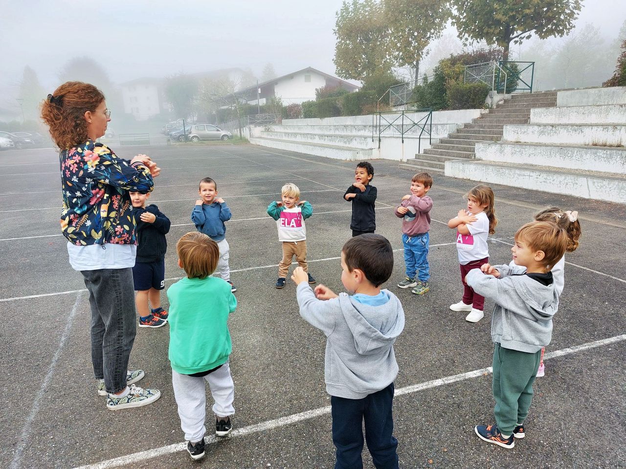 Les enfants de la Grande section au CM2 se sont rendus à Lokarri par la voie verte. Le terrain de foot étant trop mouillé pour courir sur l'herbe, un parcours à côté leur a été...