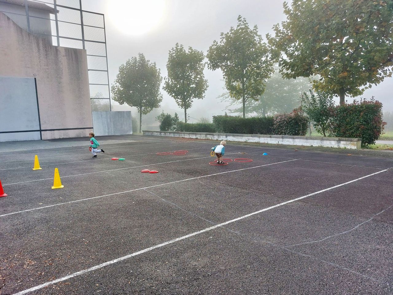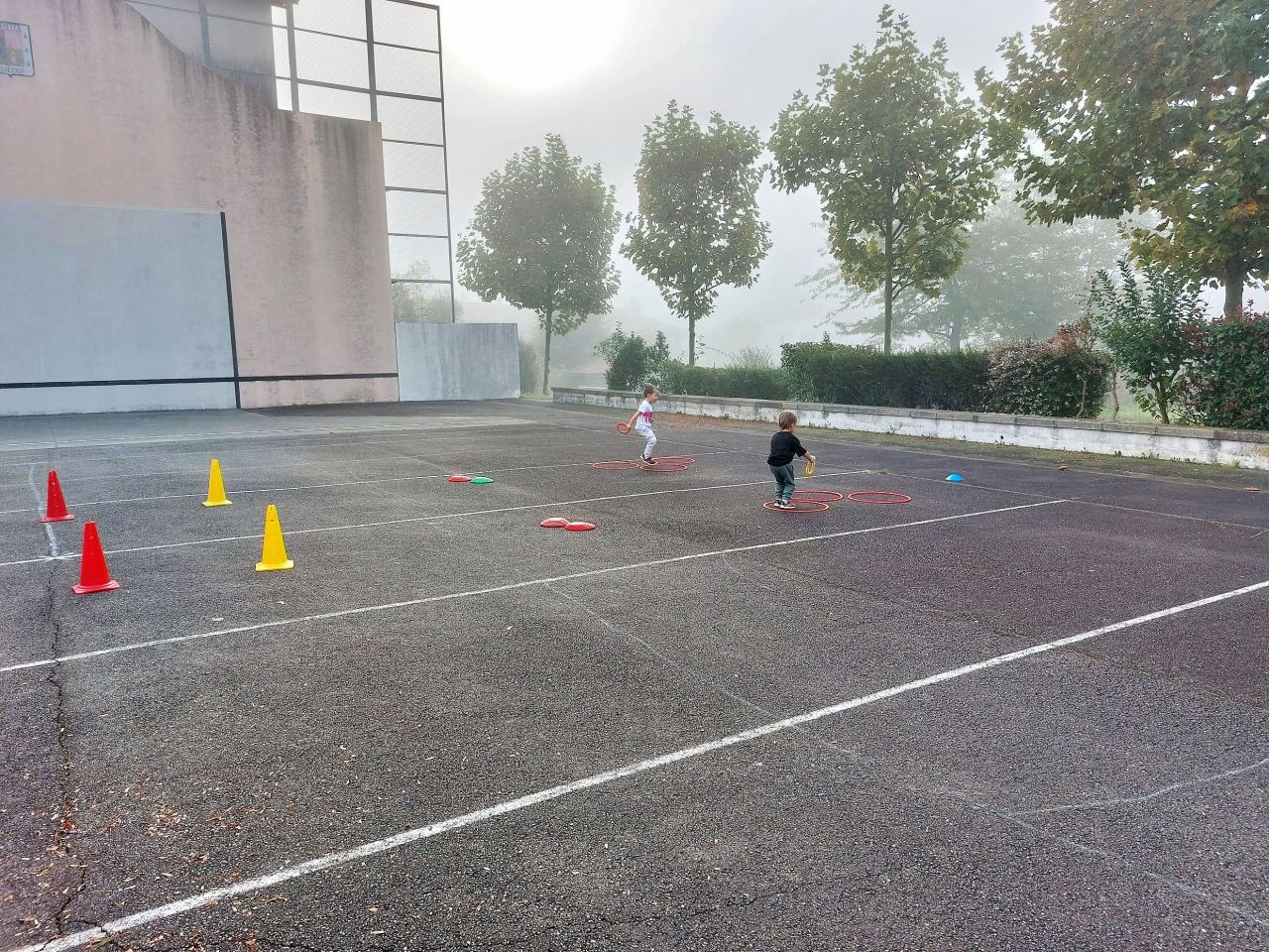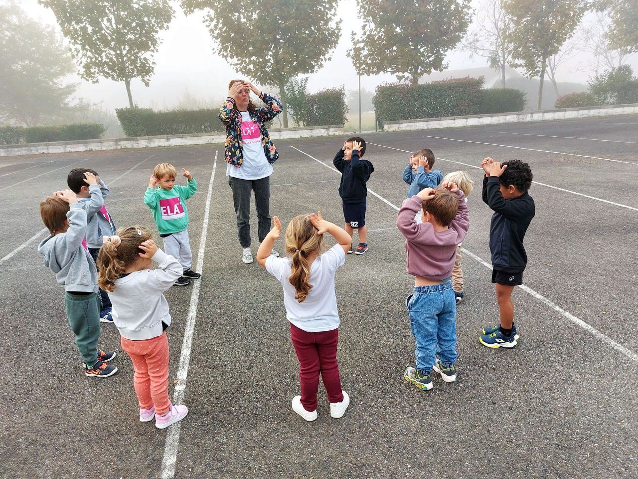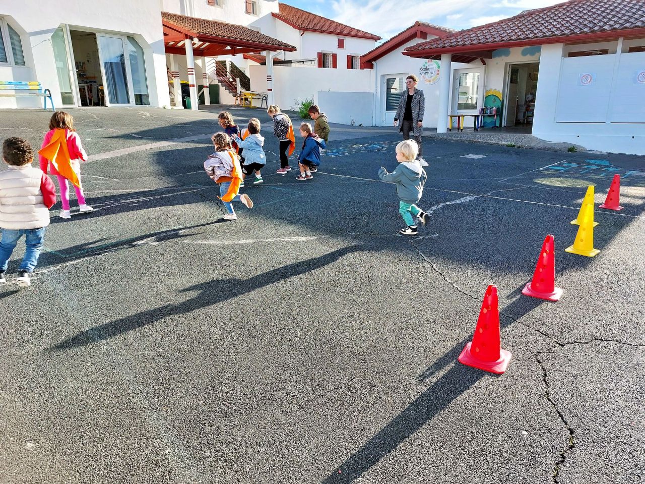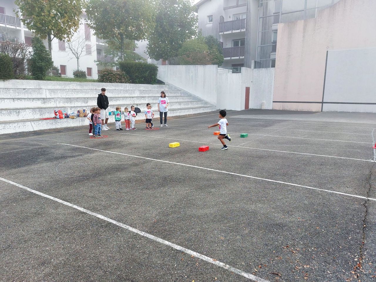 Les enfants de la Grande section au CM2 se sont rendus à Lokarri par la voie verte. Le terrain de foot étant trop mouillé pour courir sur l'herbe, un parcours à côté leur a été...
