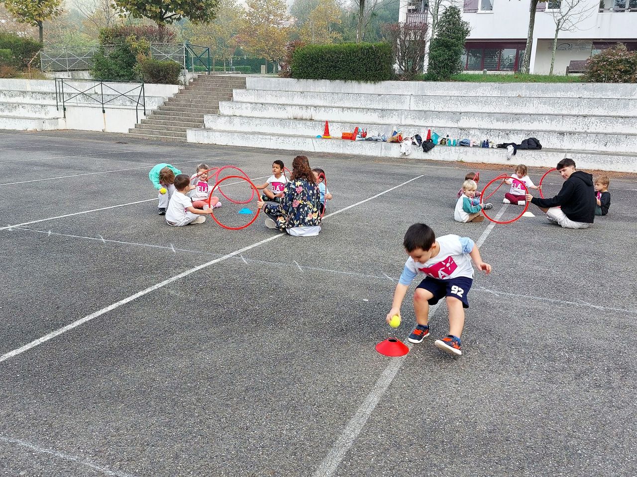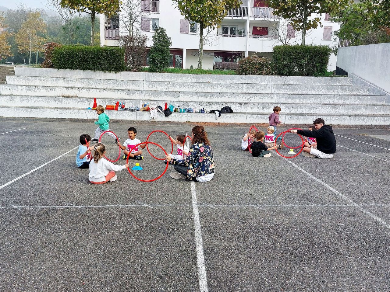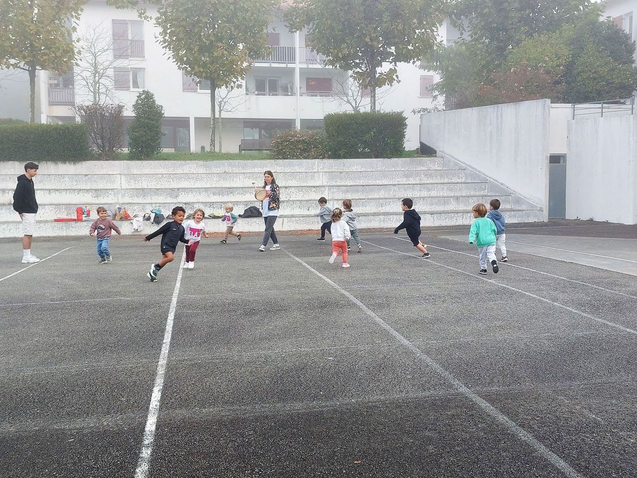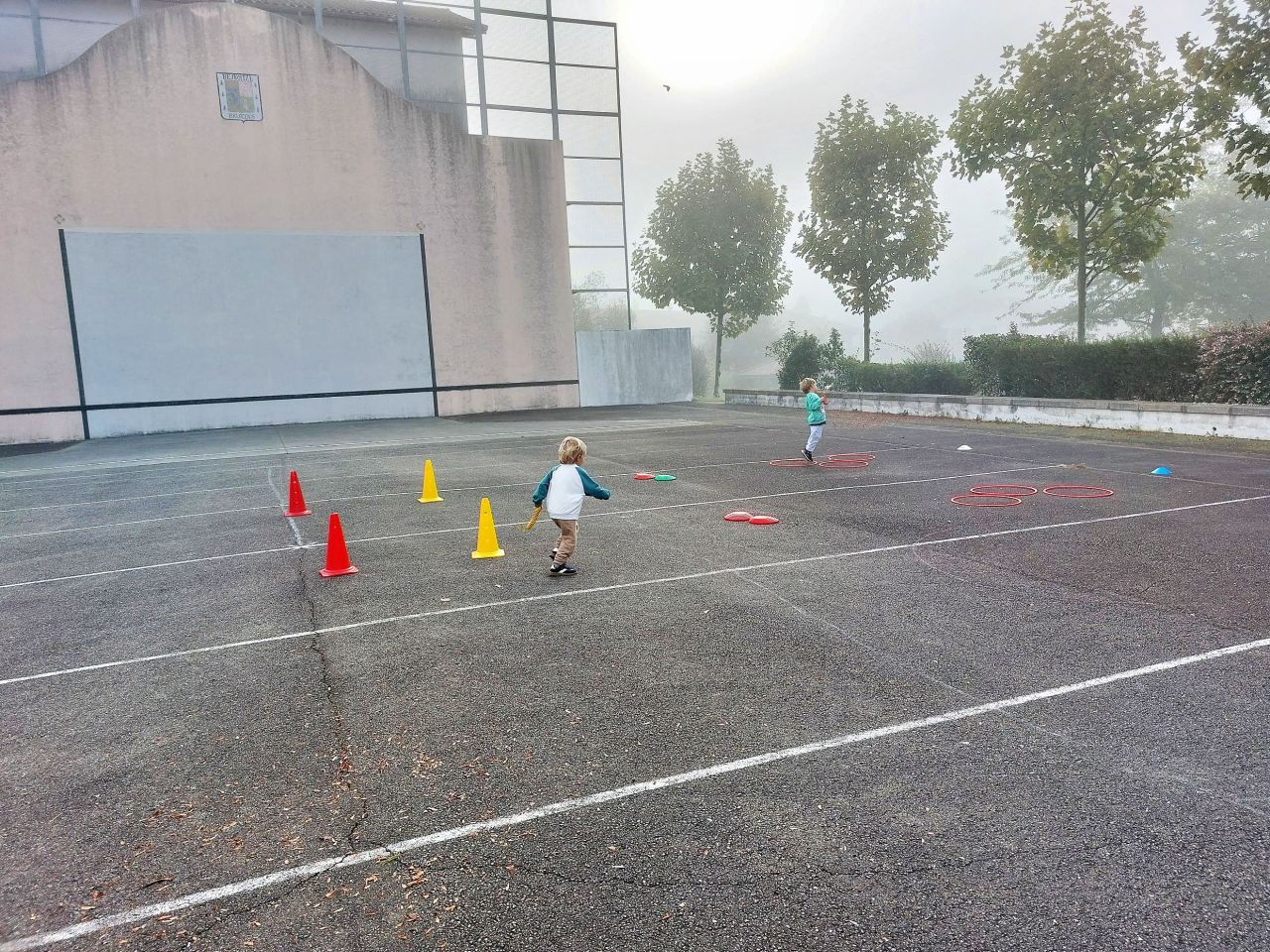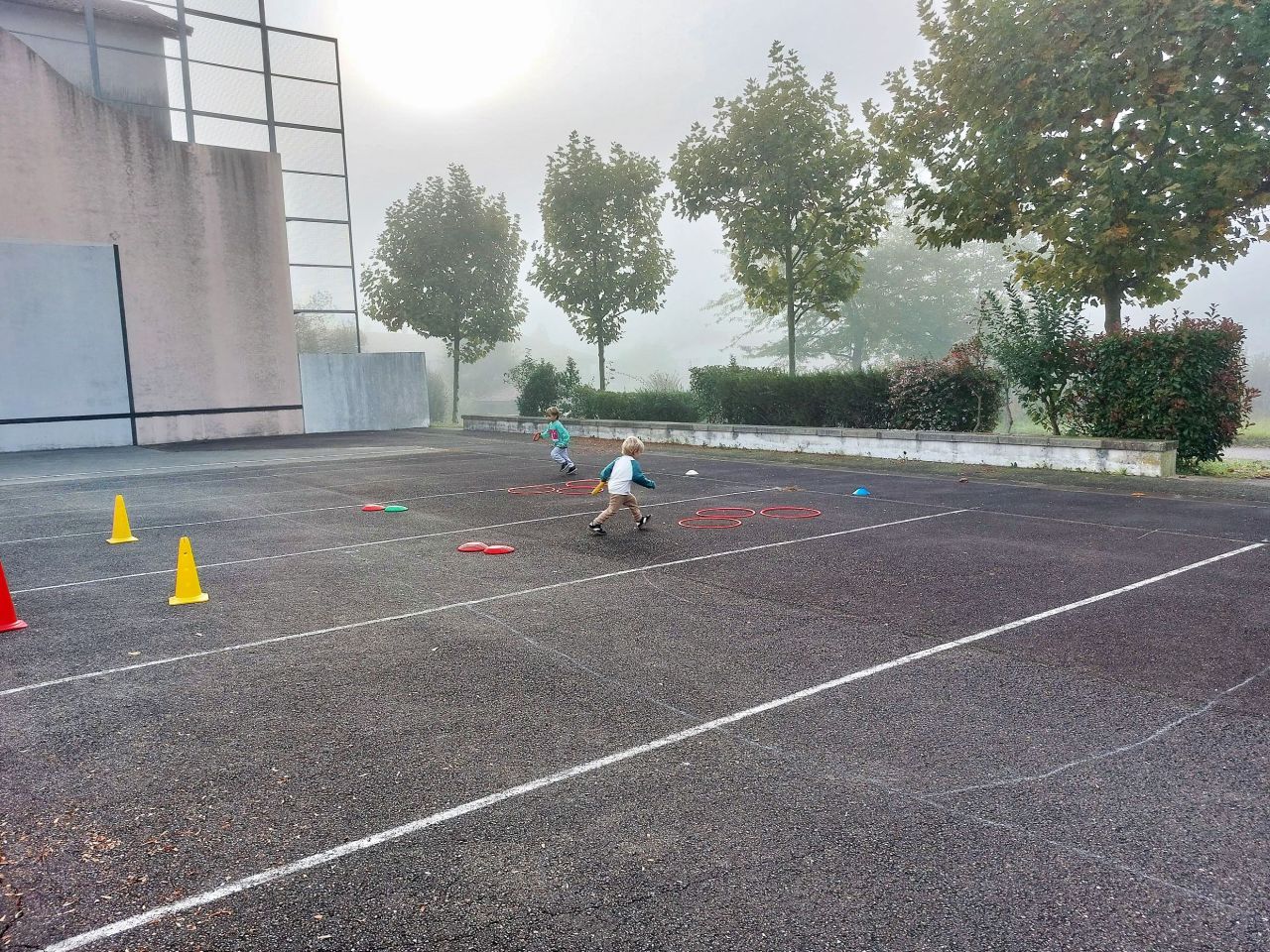Les enfants de la Grande section au CM2 se sont rendus à Lokarri par la voie verte. Le terrain de foot étant trop mouillé pour courir sur l'herbe, un parcours à côté leur a été...