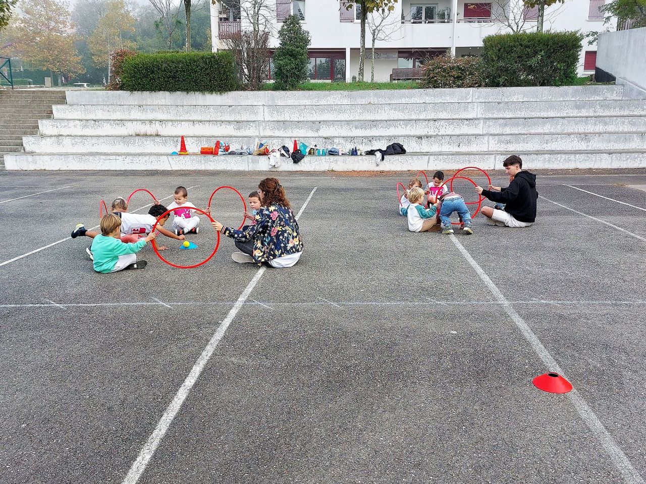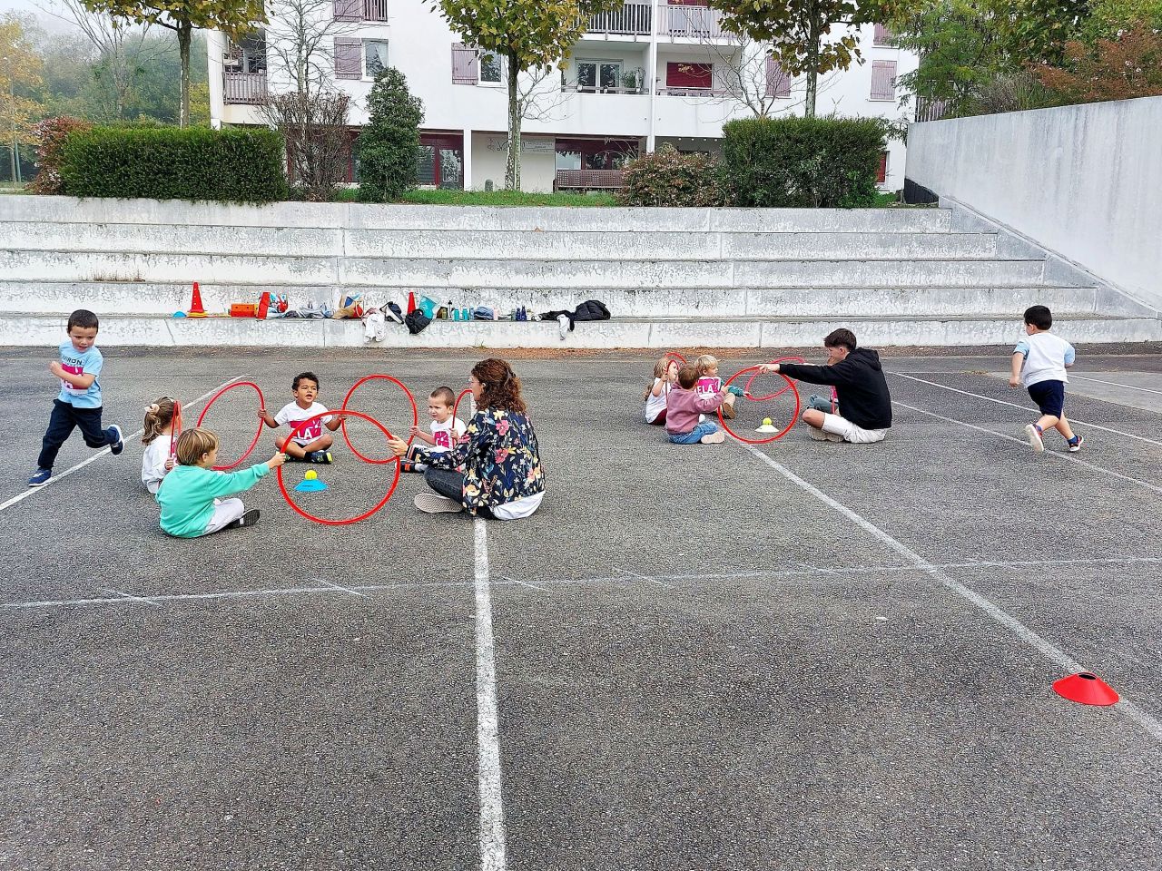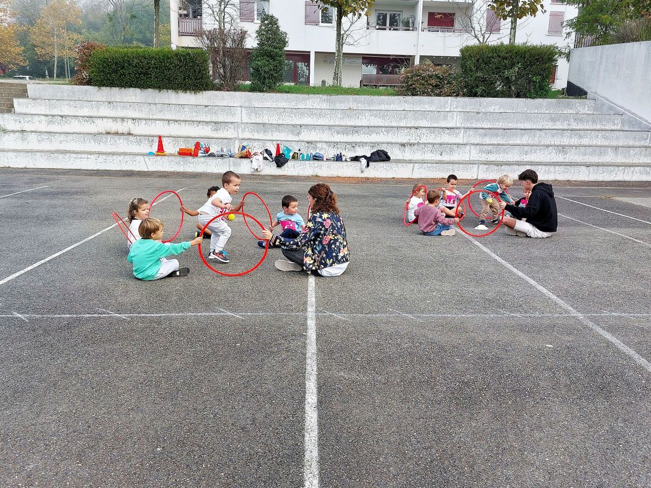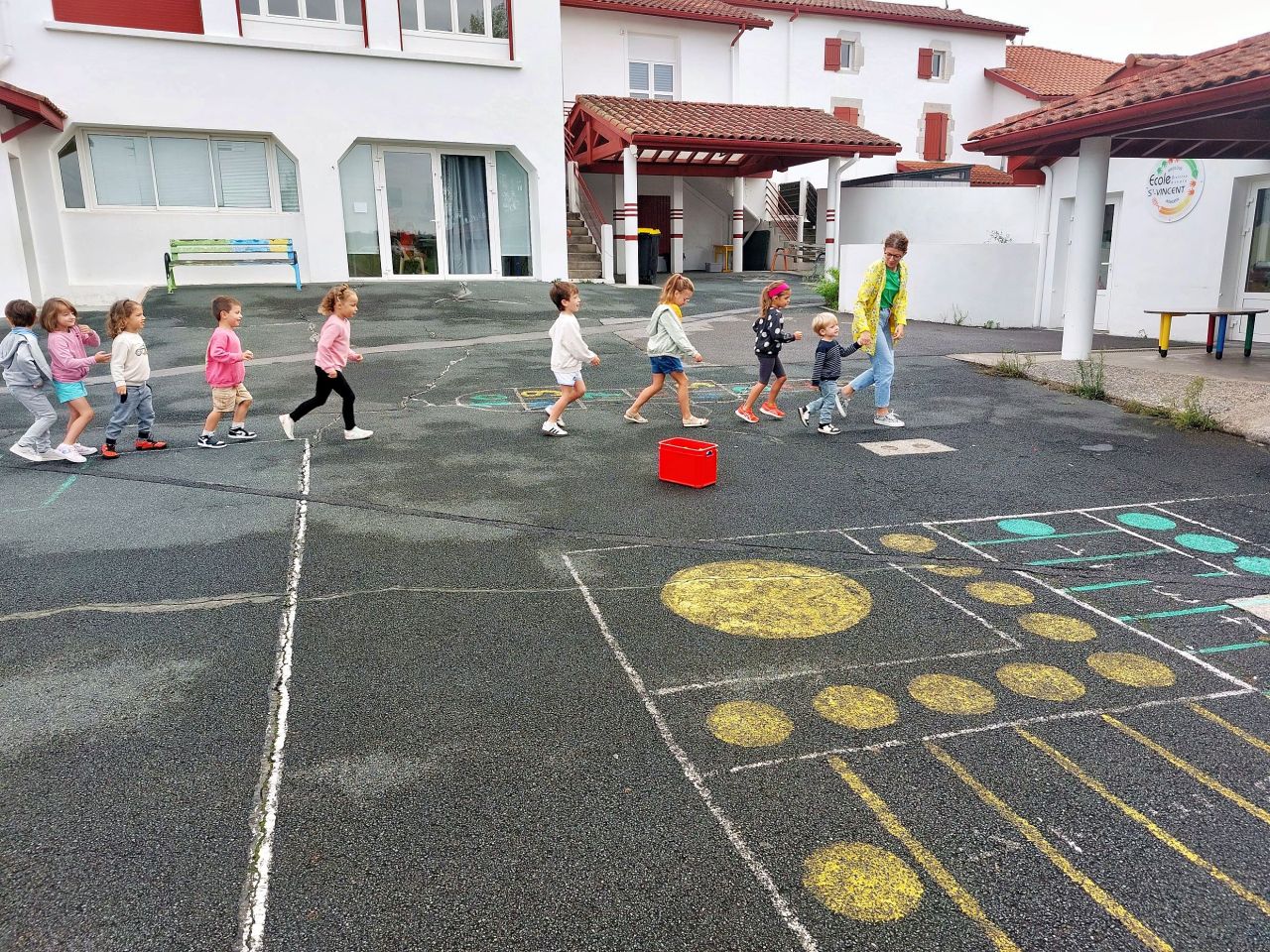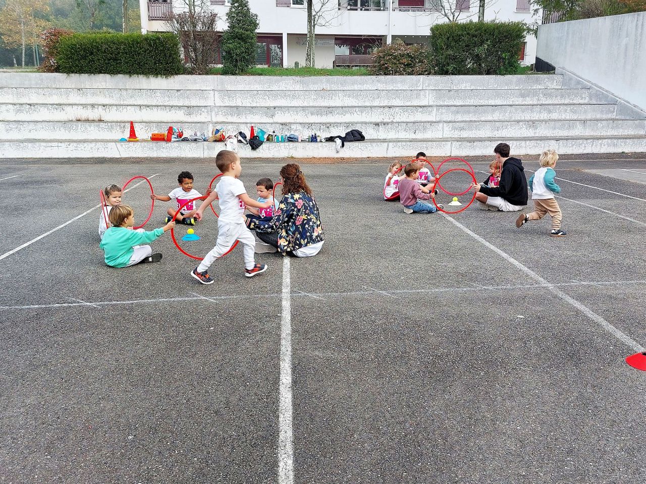 Les enfants de la Grande section au CM2 se sont rendus à Lokarri par la voie verte. Le terrain de foot étant trop mouillé pour courir sur l'herbe, un parcours à côté leur a été...