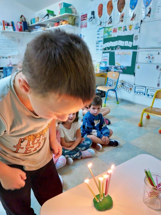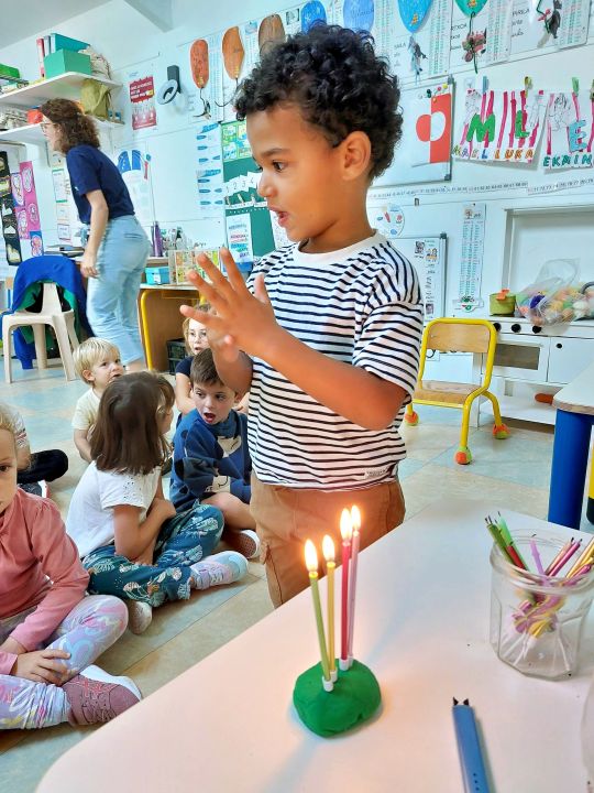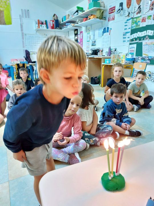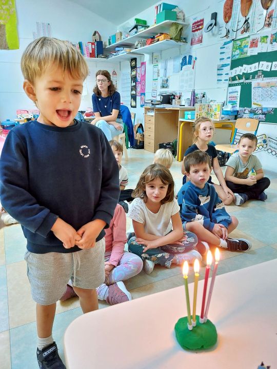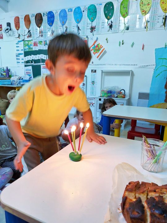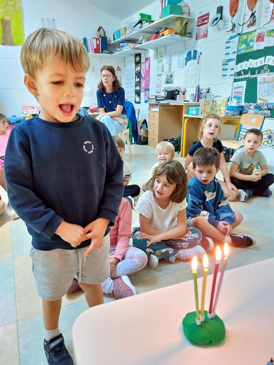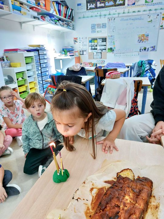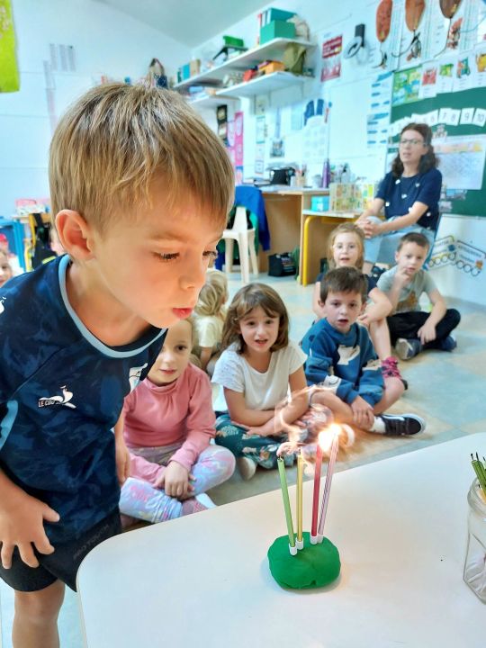 Lehen garai huntako azken astean, Maximen urtebetetzea ospatzen dugu. 5 urte egiten ditu urrian! Horretarako udare biskotx bat Marionekin sukaldatu dugu goizean. Arratsaldean, denek elkarrekin partekatu dugu eta ainitz gustatu zaigu. Urtebetetze on Maxime!