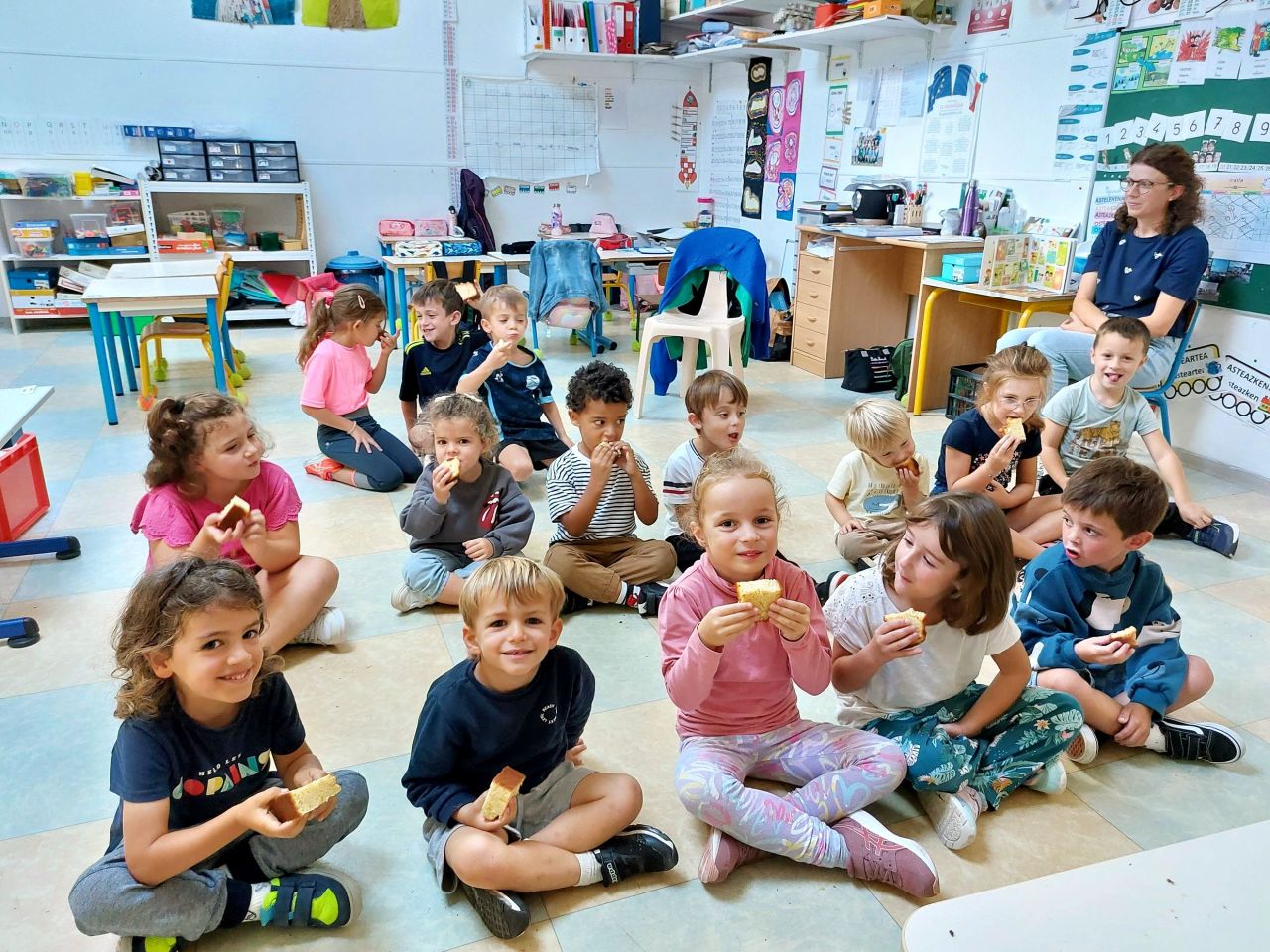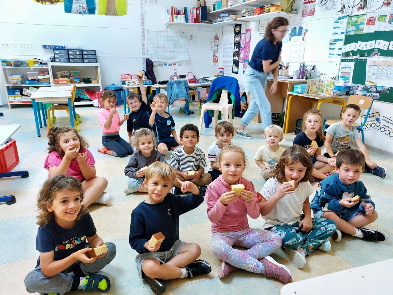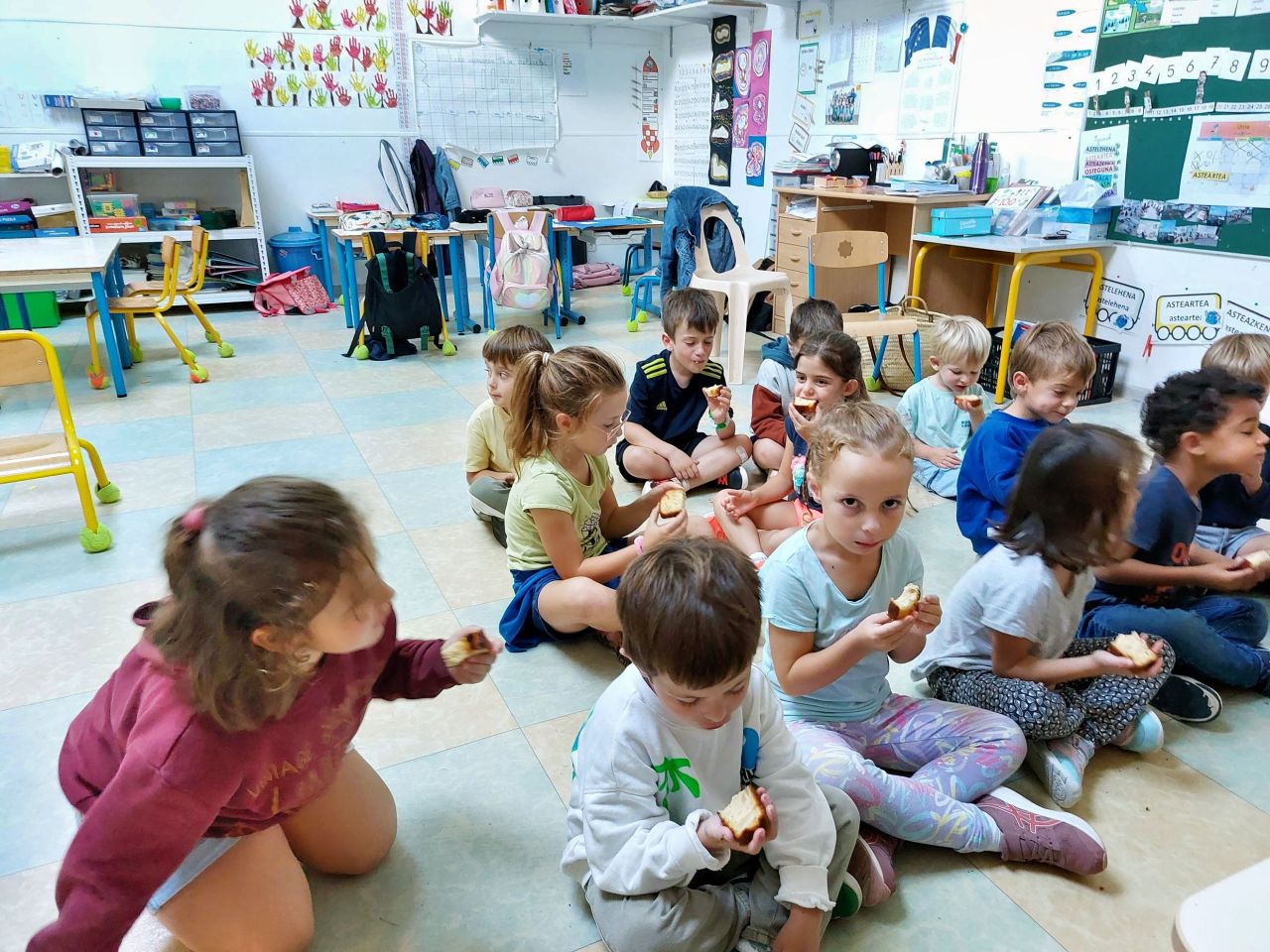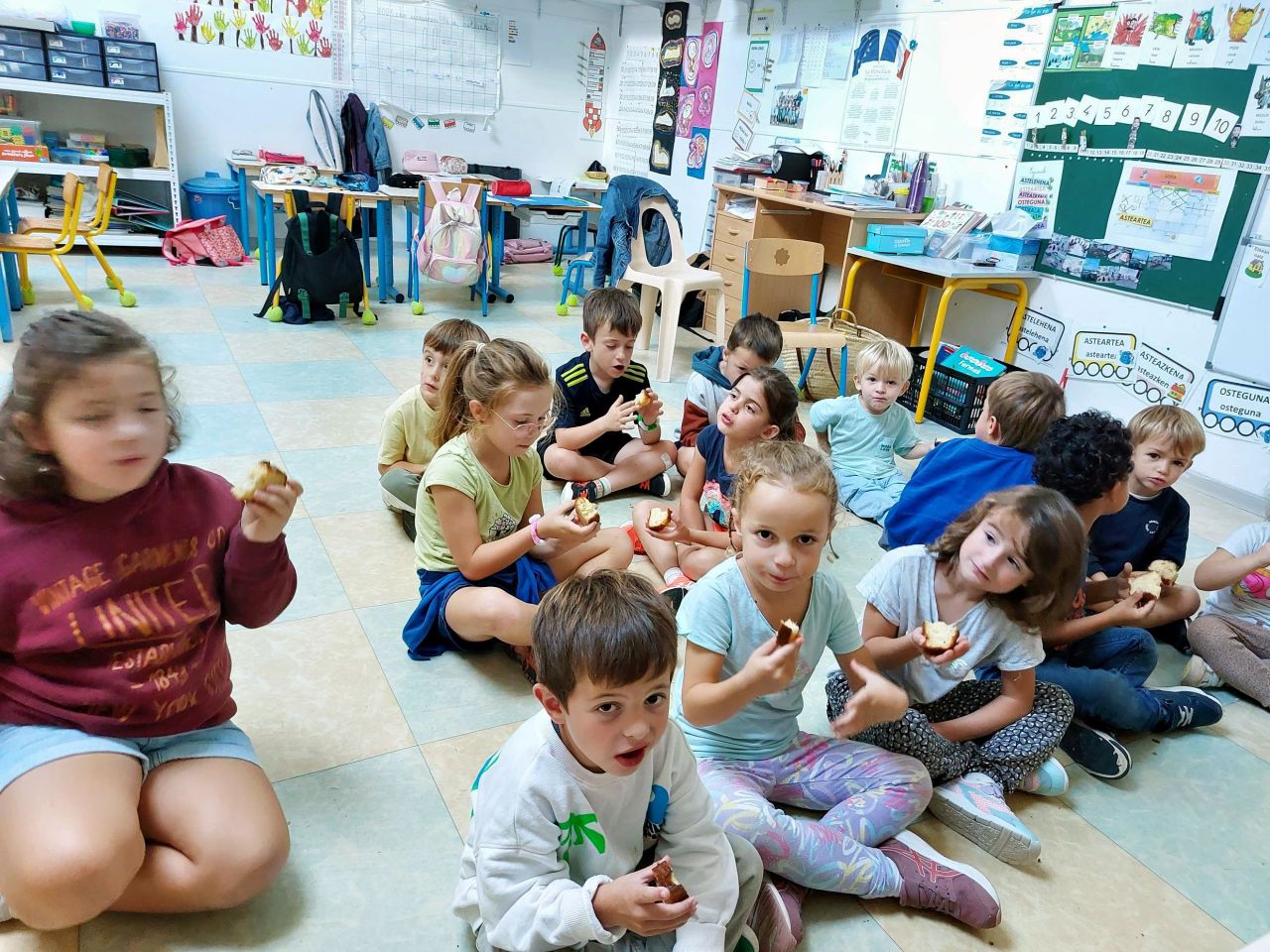 Horretarako, sagar biskotx bat Marionekin prestatu dugu goizean. Arratsaldean, denek elkarrekin partekatu dugu eta biziki ona zen! Denek ainitz maitatu dugu! Urtebetetze on Bettan, Mael, Luka, Ekain eta Mattin!!