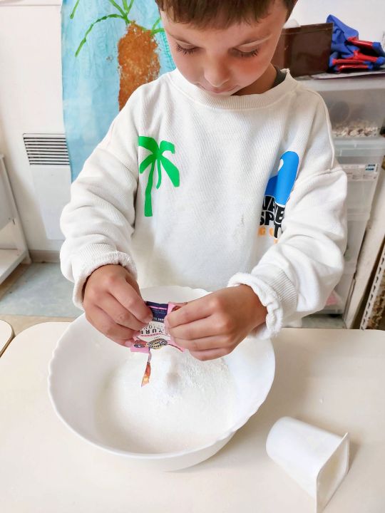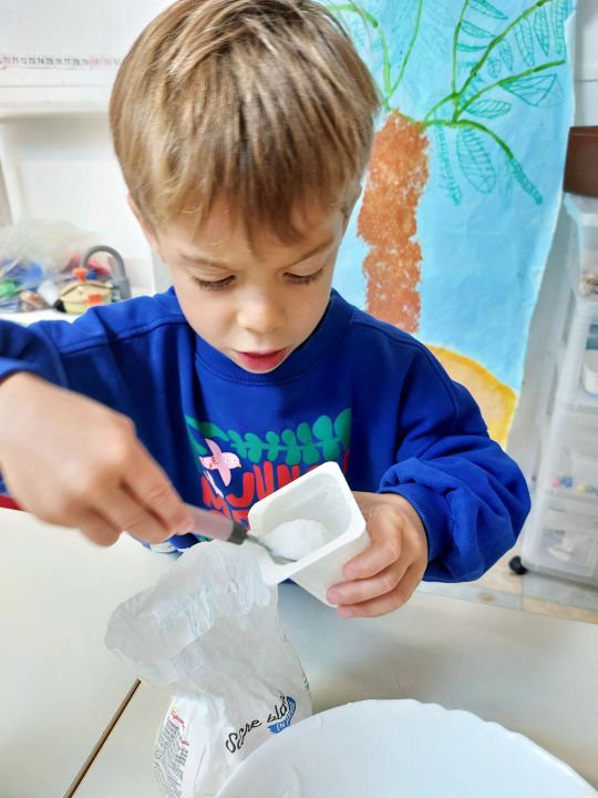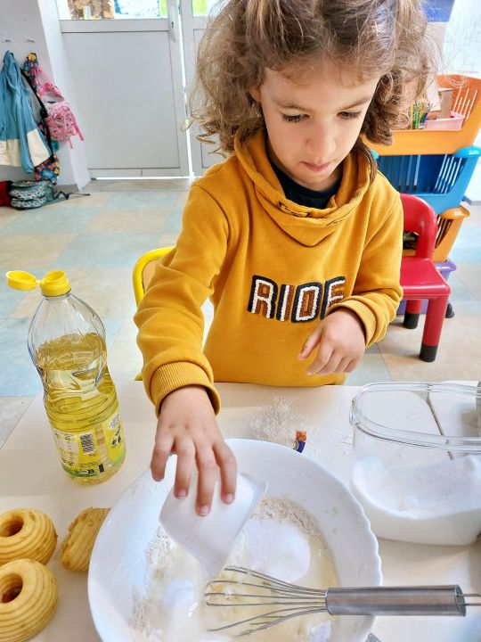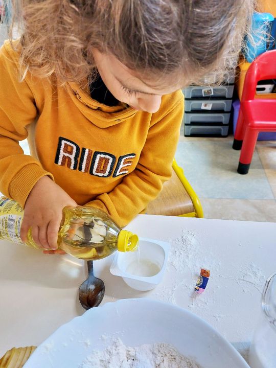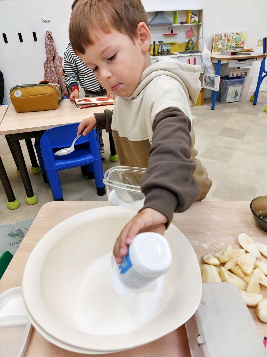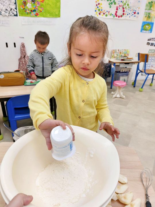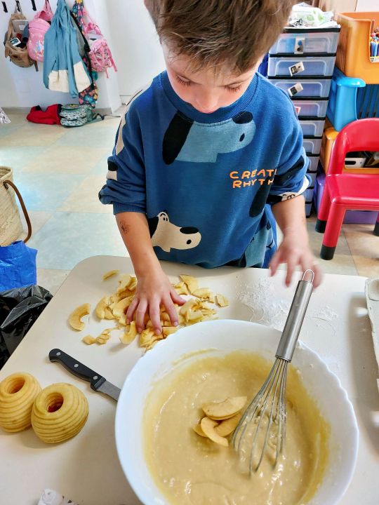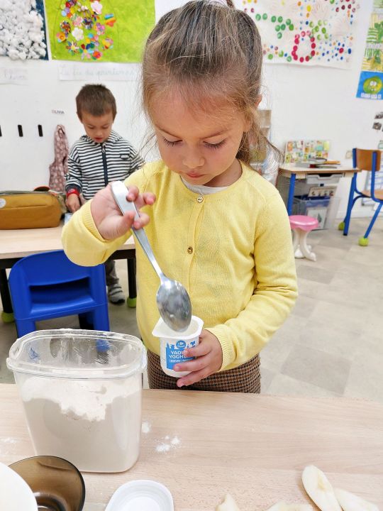 Nous avons préparé un gâteau au yahourt et aux pommes tous ensemble. Chacun a mis la main à la pâte !🎂🎂🍎🍎