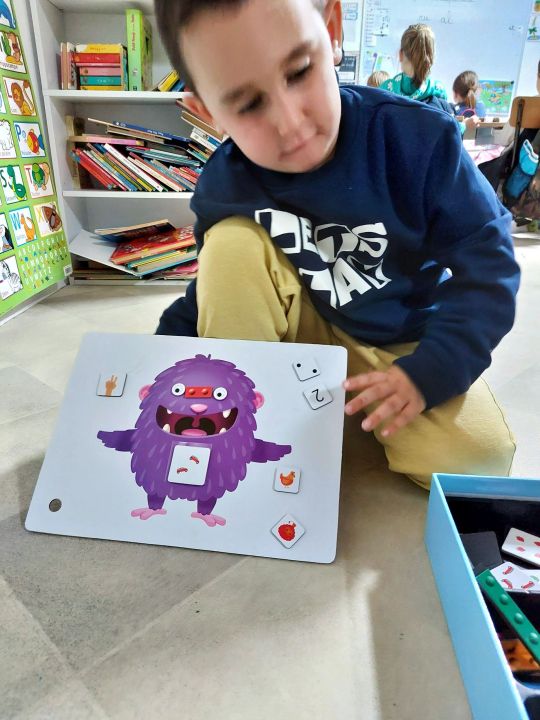 Pour commencer, nous avons travaillé sur 2 albums en rapport avec la rentrée. En premier, "Gloups", l'histoire d'un gentil petit monstre qui essaye d'être sage mais ce n'est...