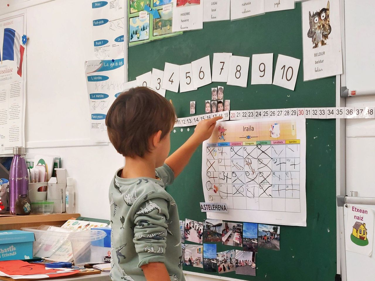 Horra, urte berri bat hasi dugu gure gelan! Bettan izeneko mutiko ttipi berri bat gure gelan hasi da. Beste ikasle guziek haien toki berria plazerrekin hartu dute. Segidan hasi gira lanean eta udako arbola handi bat elkarrekin tindatu dugu. "Gloups" izeneko liburu bat irakurri dugu eta gelan atxematen dugun materialaren hiztegia errepikatu dugu, ongi gogoan atxikitzeko. Ondotik, "Koloreen munstroa eskolara doa" ixtorioa deskubritu dugu eta gelako arauak elkarrekin idatzi ditugu.