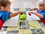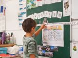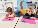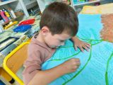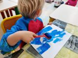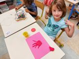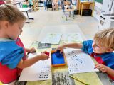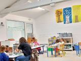 Voilà une nouvelle année qui commence! Nous avons accueilli un nouvel élève qui s'appelle Bettan dans notre classe. Tous les autres élèves ont pris leur nouvelle place avec joie. Nous nous sommes rapidement mis au travail et avons peint ensemble un grand arbre d'été. Nous avons lu un livre intitulé "Gloups" et nous avons répété le vocabulaire du matériel de la classe pour le mémoriser. Ensuite, nous avons découvert l'histoire "Le monstre des couleurs va à l'école" et nous avons écrit ensemble les règles de la classe.