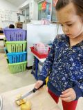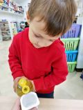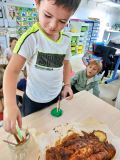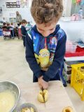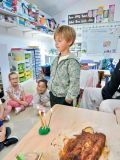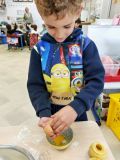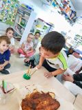 A l'heure du goûter, nous avons chanté pour nos trois camarades et ils ont donné tout leur souffle pour éteindre leurs bougies. Puis nous avons dégusté ce délicieux gâteau au bon goût de pommes.