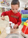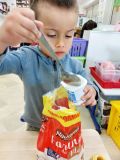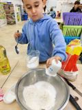 Nous avons préparé un gâteau au yahourt et aux pommes tous ensemble. Chacun a mis la main à la pâte !🎂🎂🍎🍎